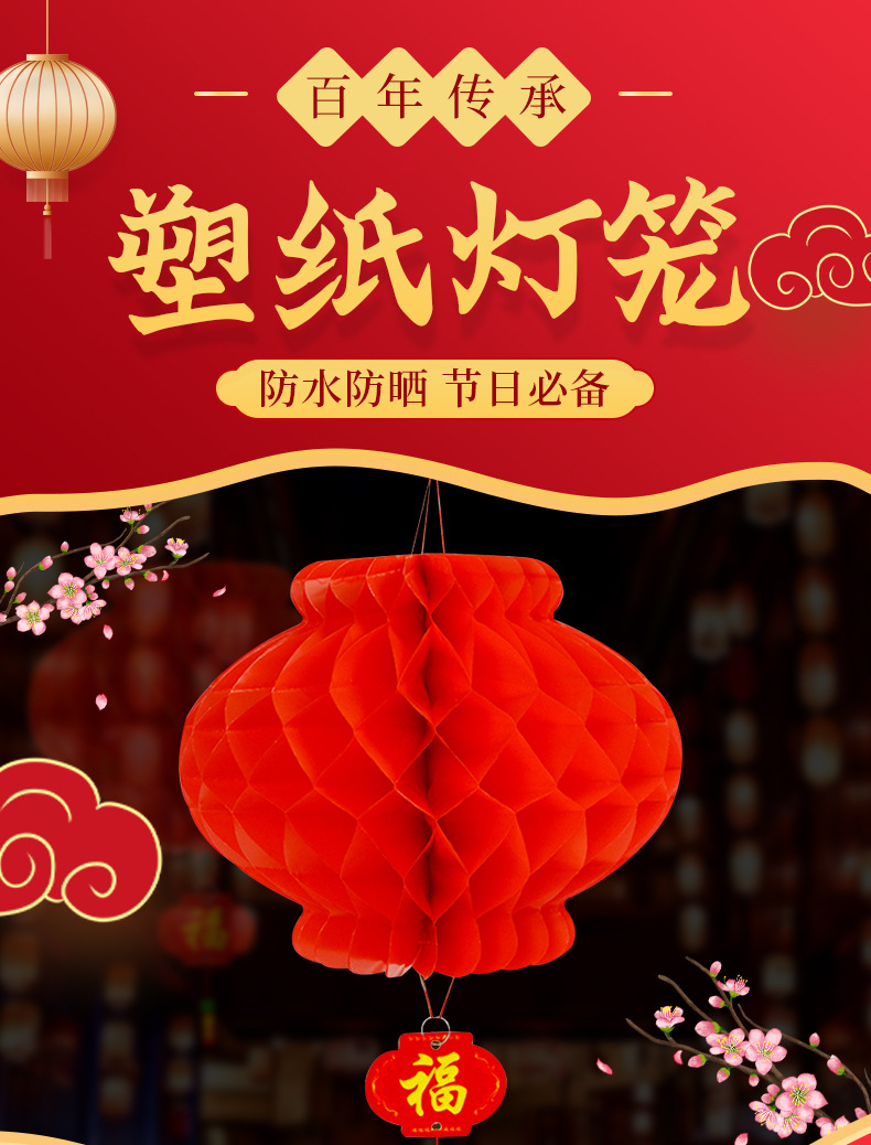 Оптовая продажа пластиковых бумажных фонариков, праздничные соты, красные, для Нового года, весеннего фестиваля, украшение для открытия торгового центра