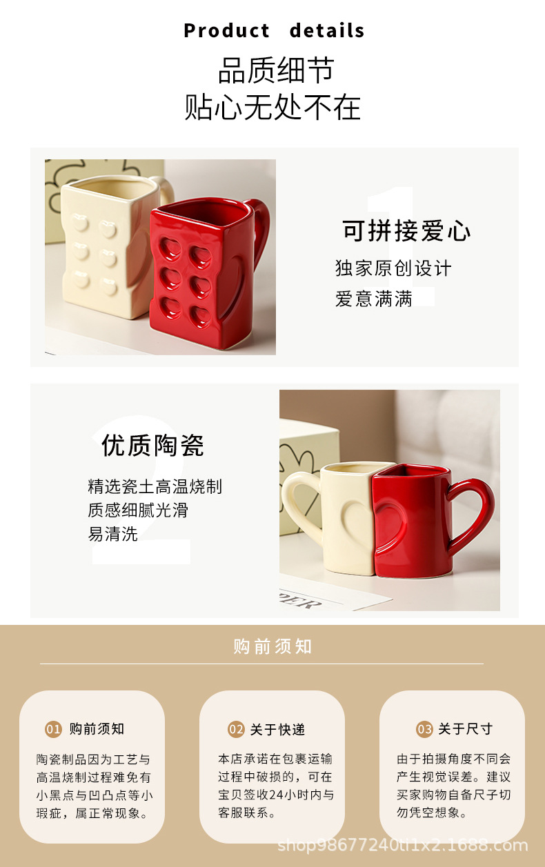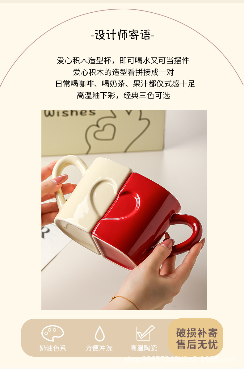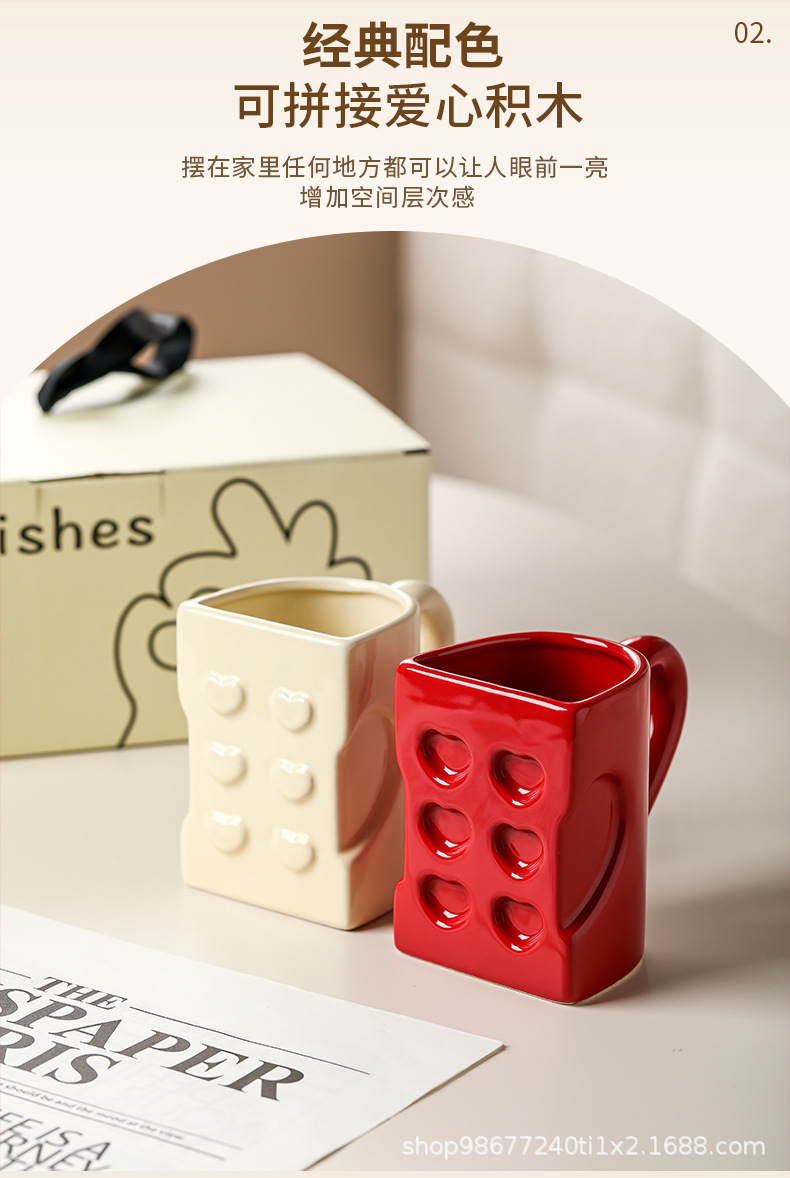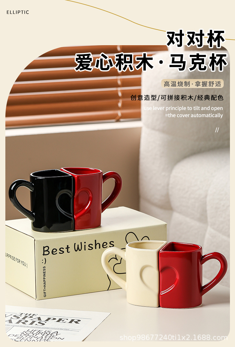 Кружка пара с оригинальными строительными блоками, керамическая, для воды, подарок на День святого Валентина