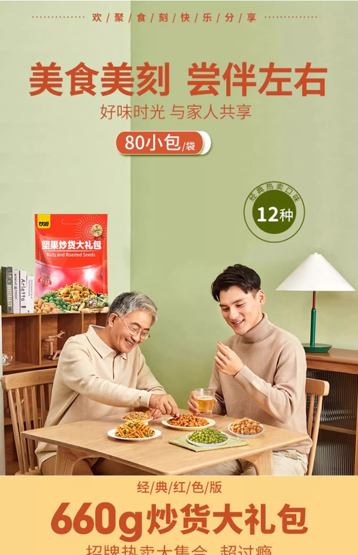 Ganyuan 660г Набор закусок с орехами и жареными семенами, 12 видов, 80 маленьких упаковок, Повседневные закуски для встреч, Корпоративные закупки и подарки