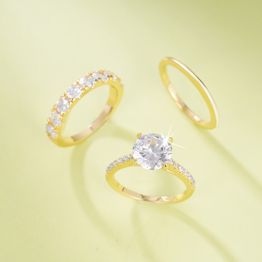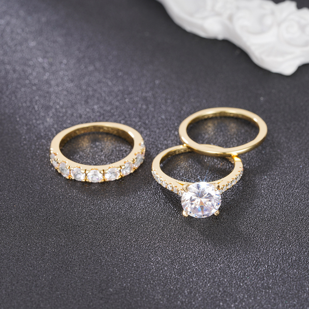 Cao Shi Европейское и Американское Экспортное Элегантное Кольцо Трехкомпонентный Набор с Цирконом Элегантное Бриллиантовое Кольцо для Свадебной Вечеринки