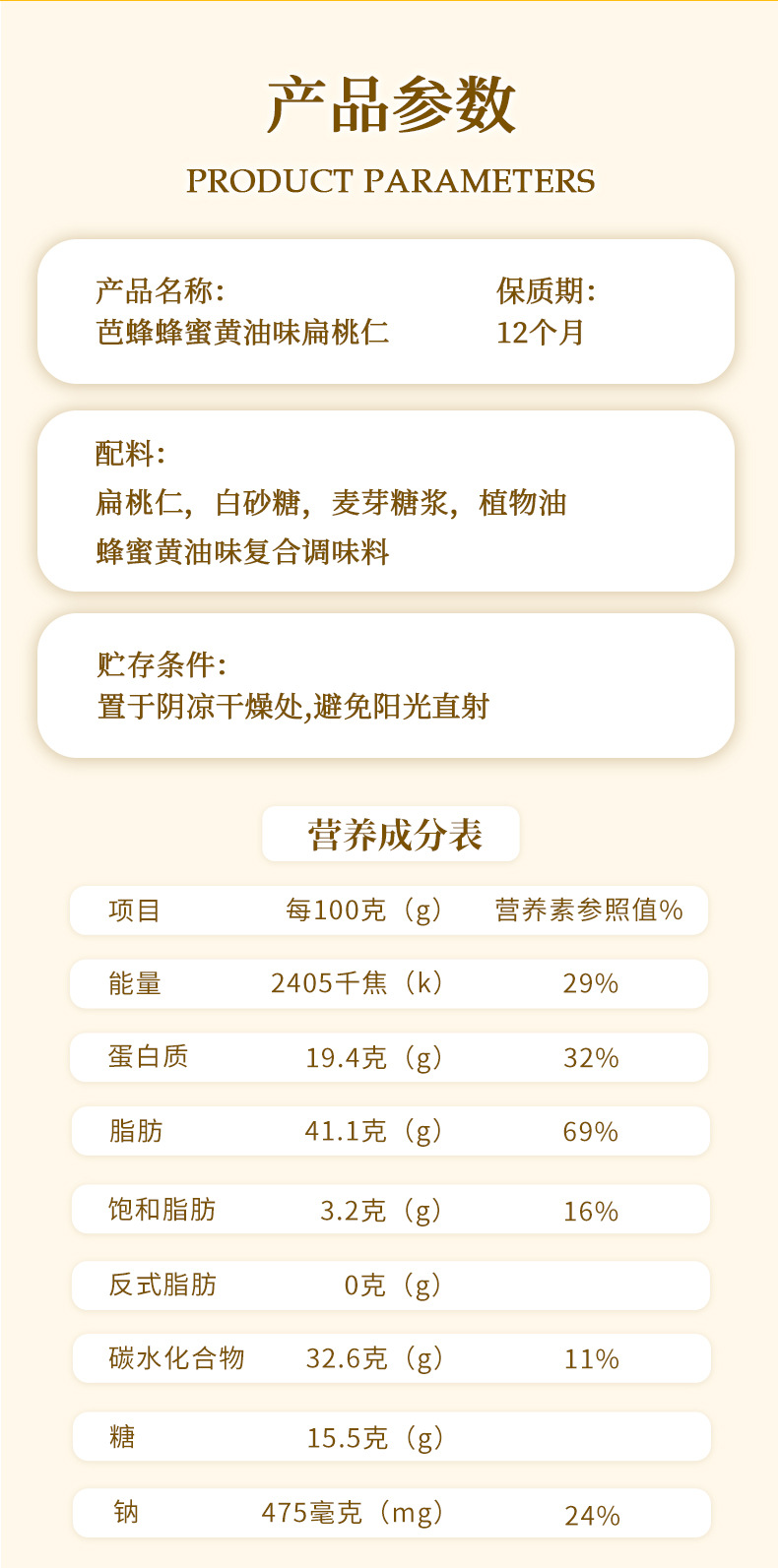 ![]() | 40g honey butter almonds (canned) | ¥12.8 / ≈ 154 ₽ | 190 | 5572669533146 | |