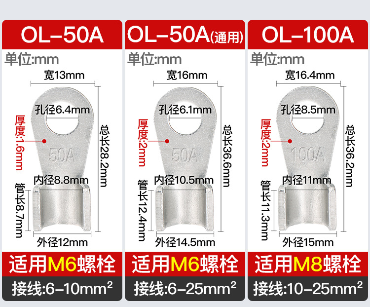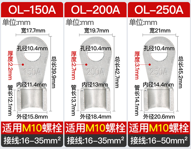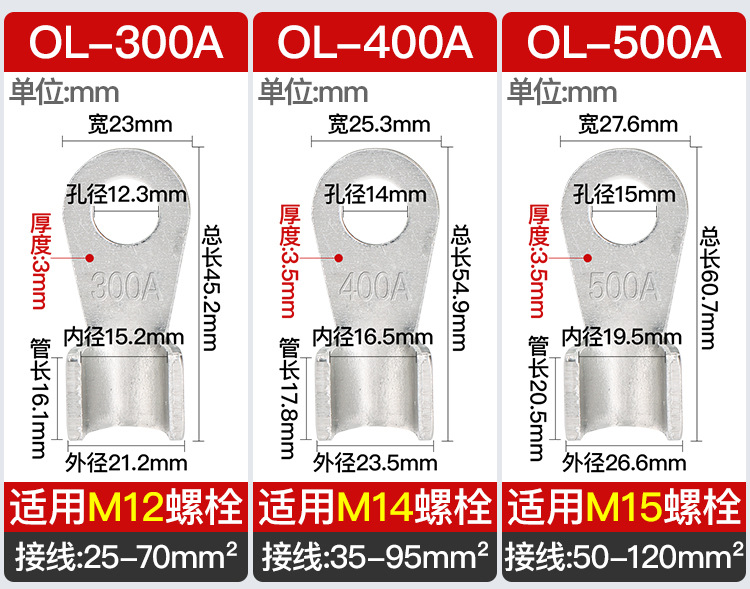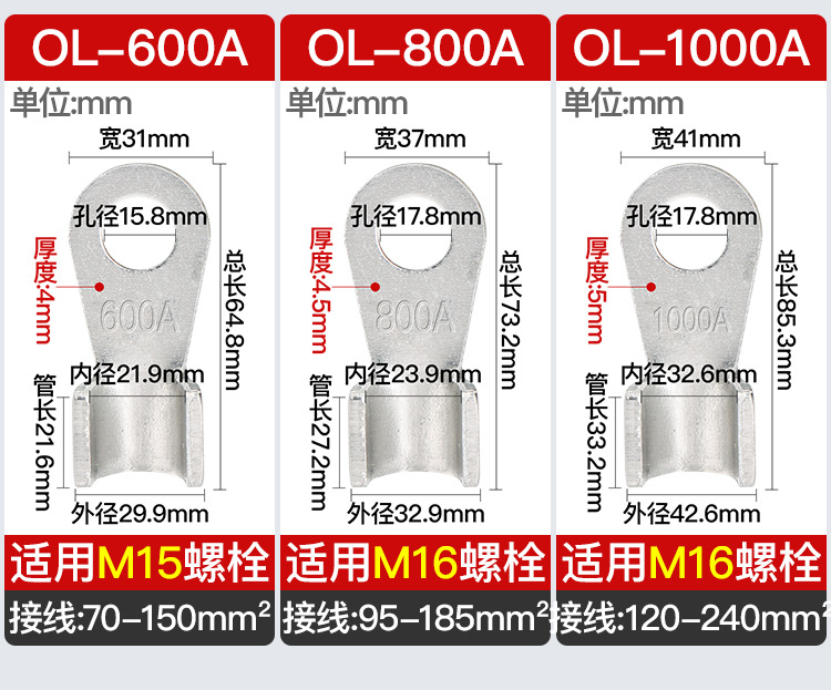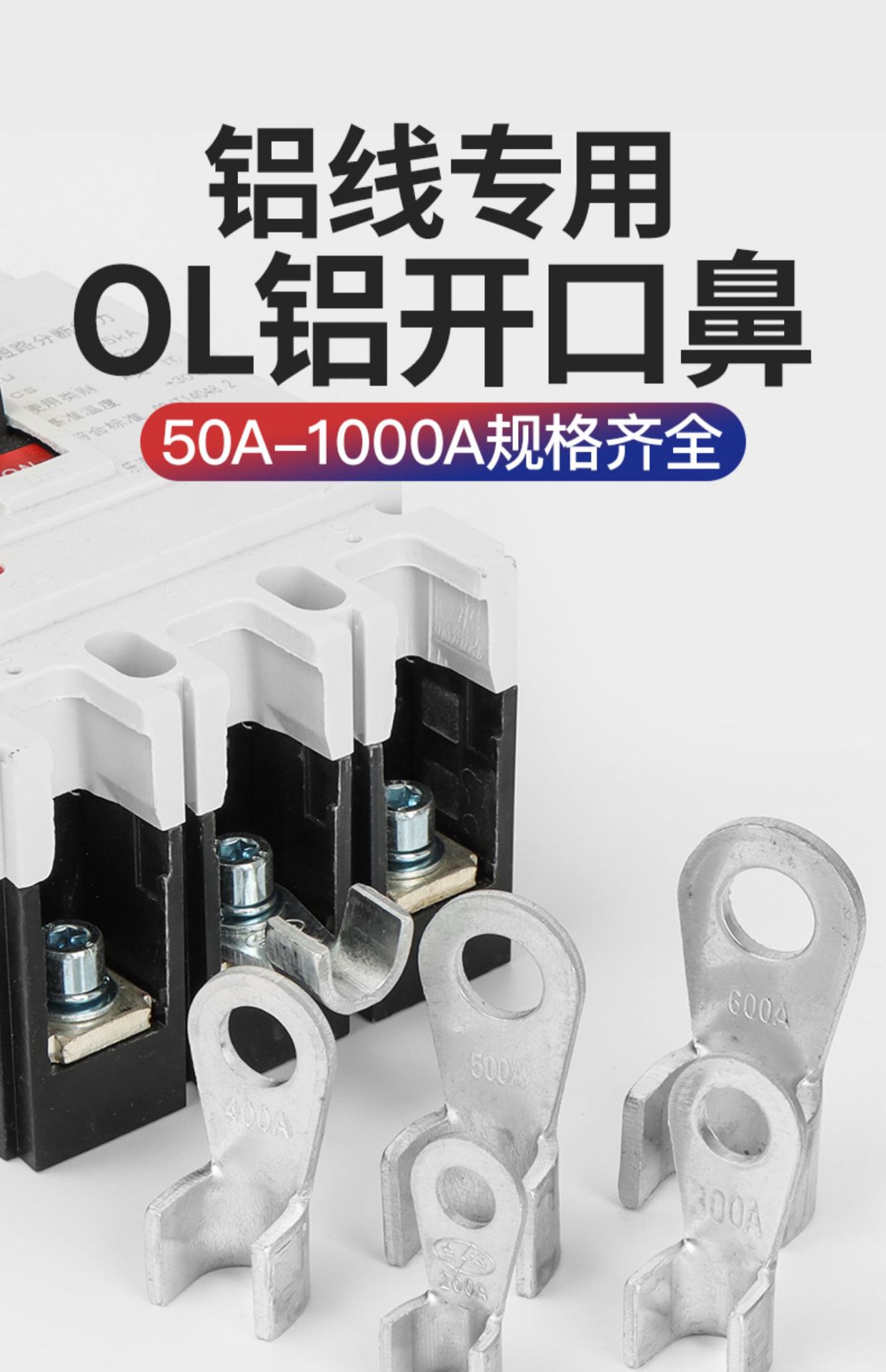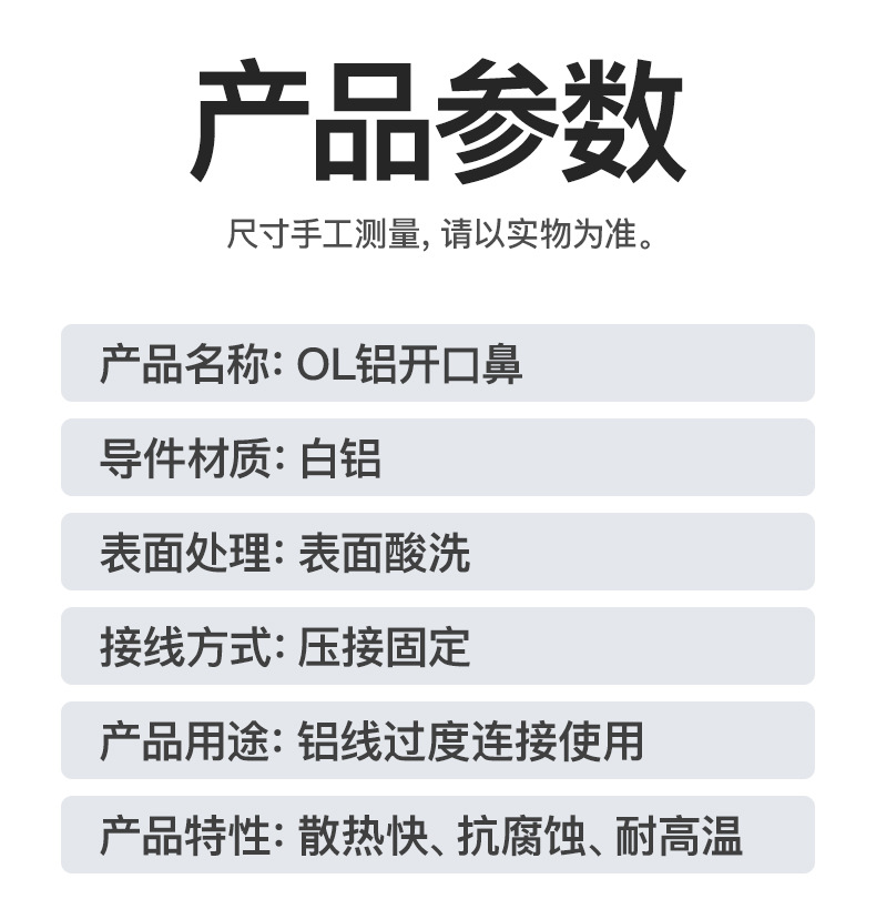 Алюминиевый открытый носовой терминал OL, алюминиевый нос, алюминиевый соединитель, алюминиевая проволока 50A-1000A, утолщенный нос, стандарт GB
