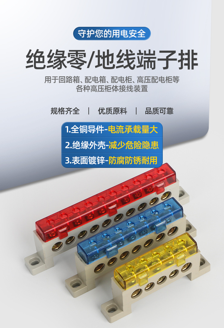 Шина нулевого провода, шина заземления, медная шина распределительного бокса, защита от пыли с многоцветной крышкой A10