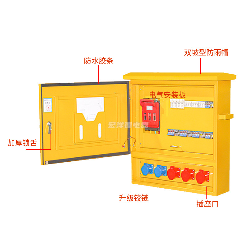 Портативный распределительный ящик для строительного участка, водонепроницаемый передний разъем, защитный электрический ящик для строительства