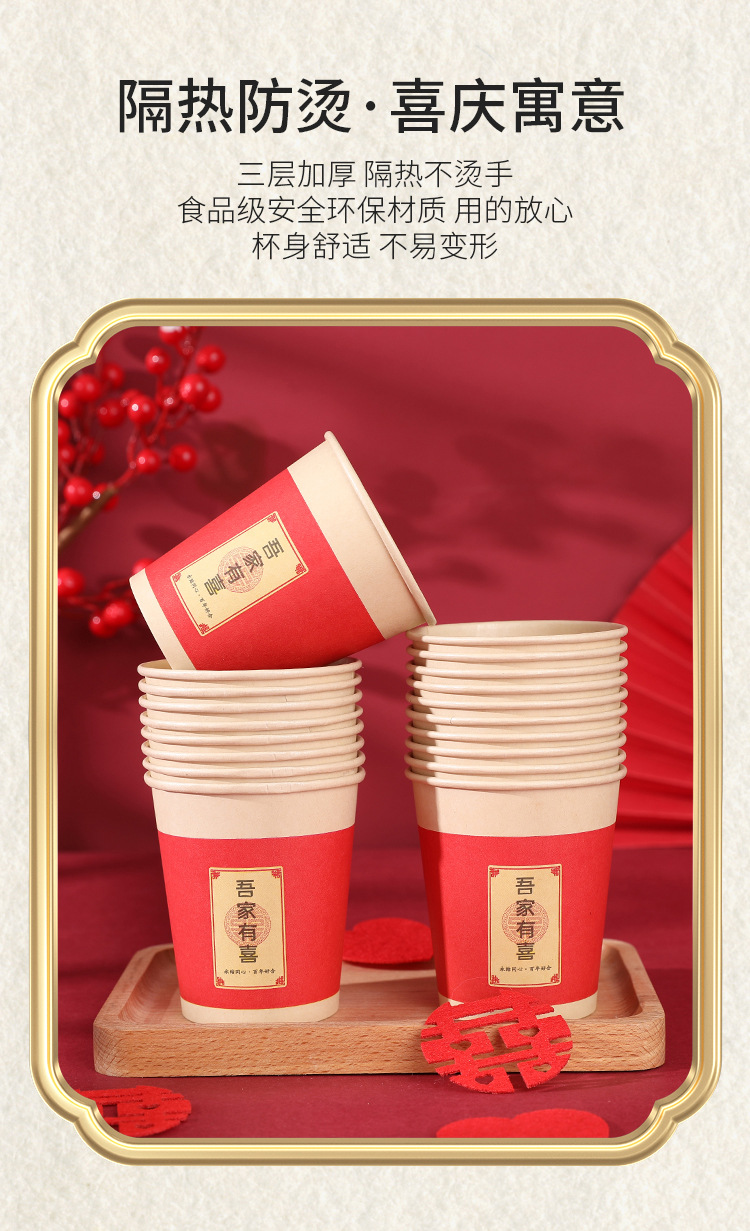 Кубок для чая на свадьбу, бумажный, оптовая продажа, одноразовый, с надписью "счастье"