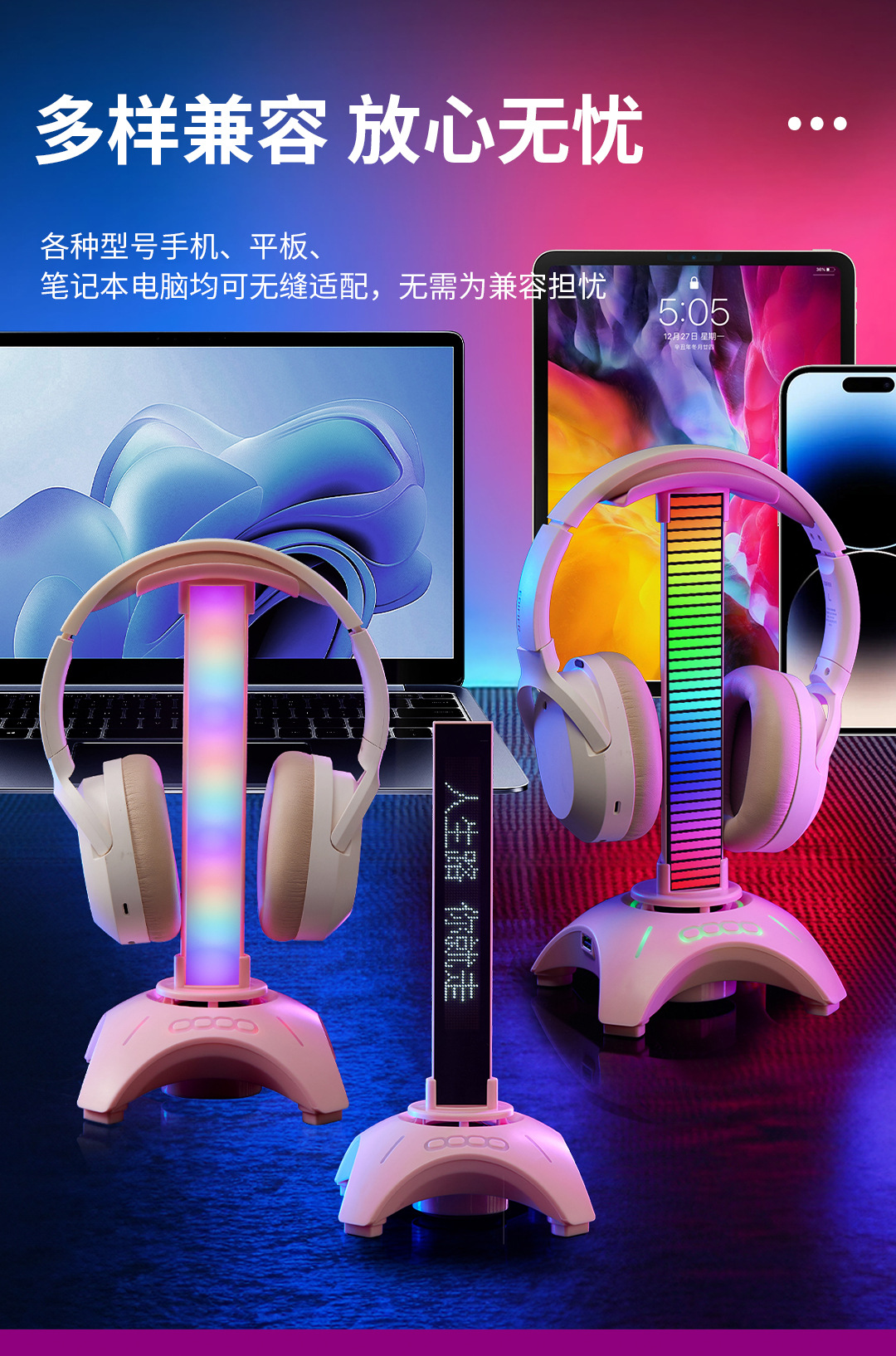 Настольный крепеж для наушников с RGB подсветкой, креативный, для компьютера, с Bluetooth колонкой