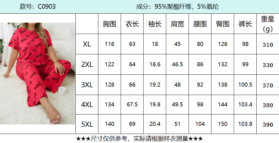 Пижама для полных женщин в европейском и американском стиле, свободный комплект с коротким рукавом и длинными штанами с сердечным вырезом