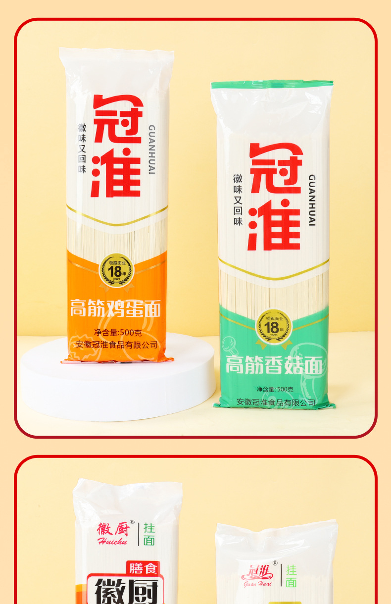 Лапша Гуанхуаи с высоким содержанием глютена 500г, пакетированная, яичная лапша, жареная лапша, грибная лапша, сухая лапша, расслабленная лапша