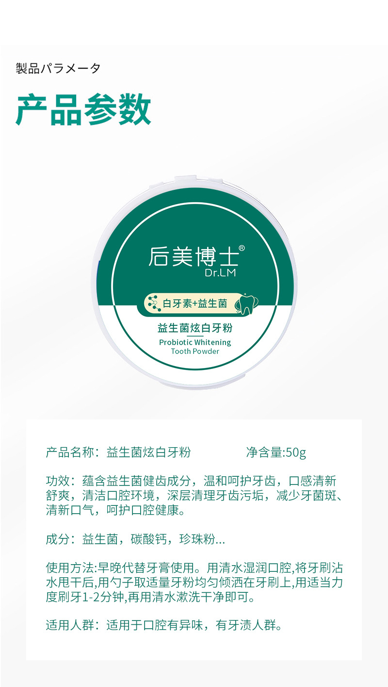 ![[in stock] Dr. Homei Probiotics Dazzling White Tooth Powder to remove Tooth Stains, Brightening White and Fresh Breath Probiotics Dental Powder](/api/image?url=https%3A%2F%2Fcbu01.alicdn.com%2Fimg%2Fibank%2FO1CN018l7MMU1QCZCsW1USd_!!2208415371940-0-cib.jpg)