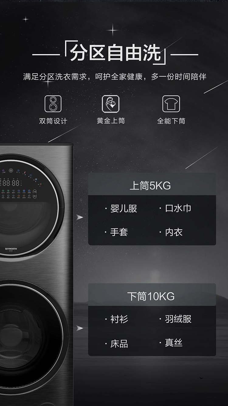 Стиральная машина Skyworth 15кг S15H с разделением, стирка и сушка в одном устройстве, двойной привод, двухсекционная, прямой привод, частотное управление для стирки детских вещей