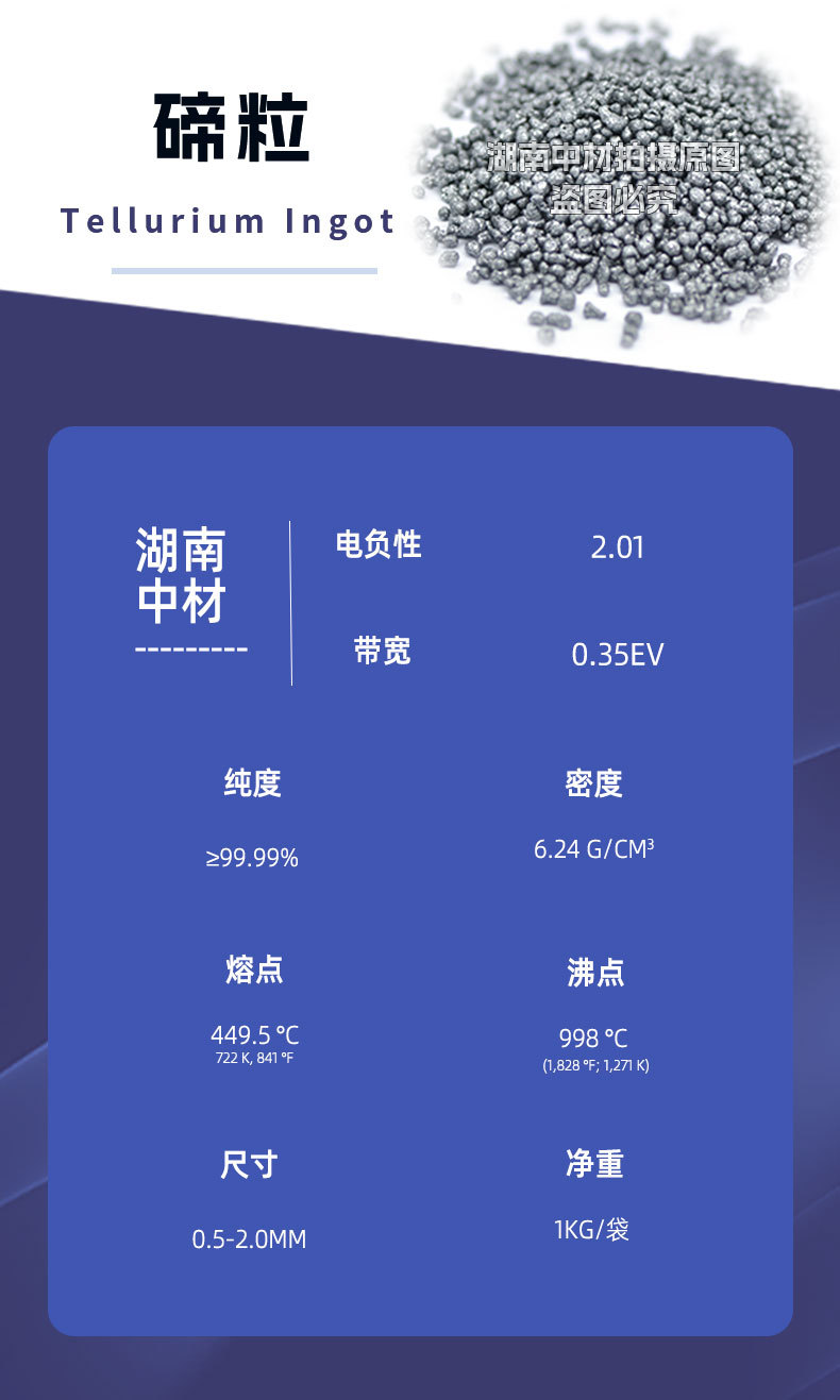 ![[Customized] Tellurium Granules Te99.99% Metal Tellurium Block Tellurium Powder Tellurium Granules for Scientific Research Experiments](/api/image?url=https%3A%2F%2Fcbu01.alicdn.com%2Fimg%2Fibank%2FO1CN01tjaiO61tKvRPrwkm5_!!2207545884-0-cib.jpg)