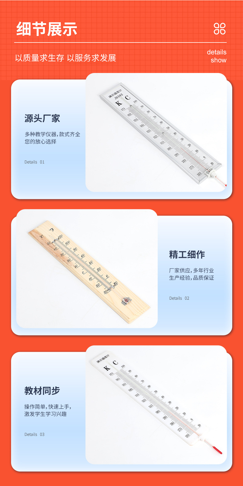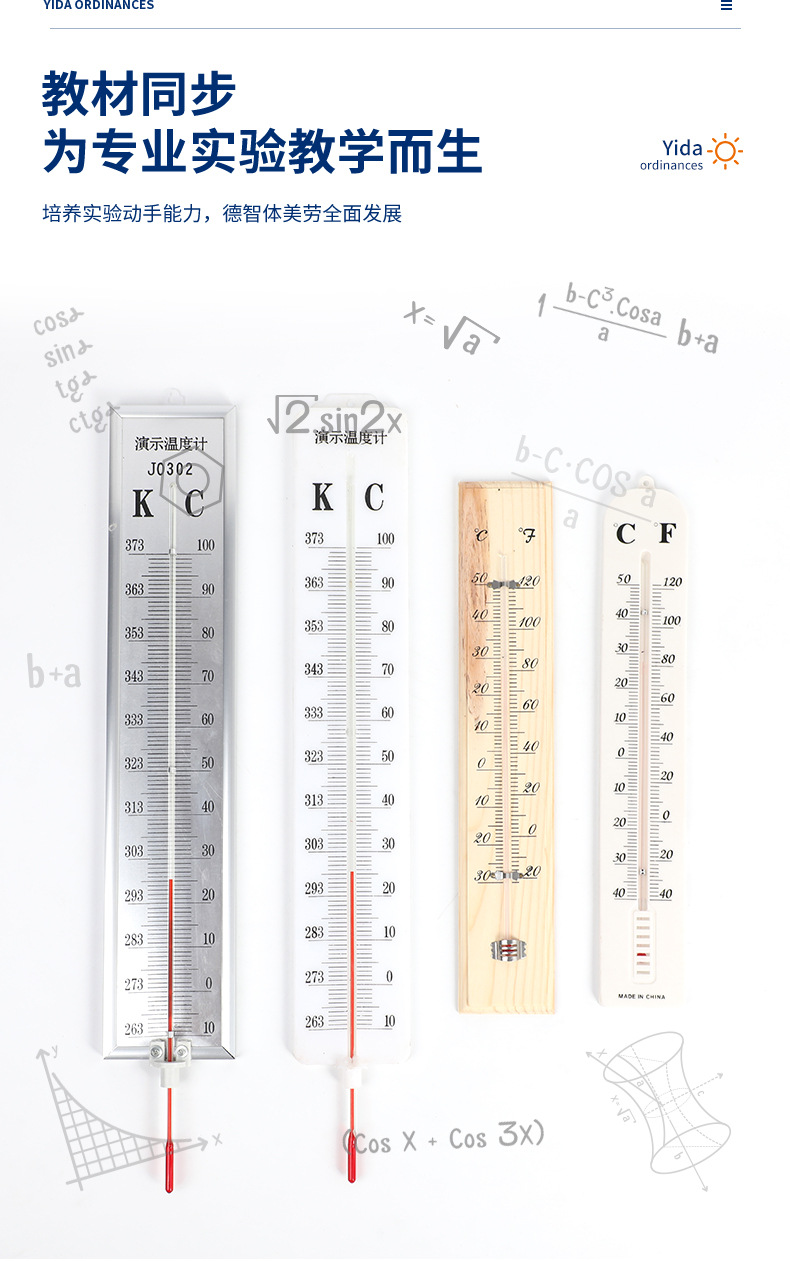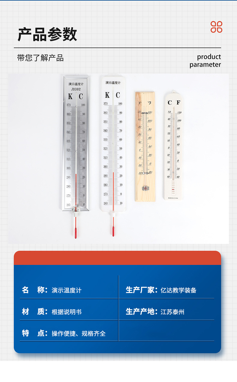 Учебный прибор для средней школы, демонстрационный термометр -10~100 ℃, термометр с красной линией, физическое оборудование