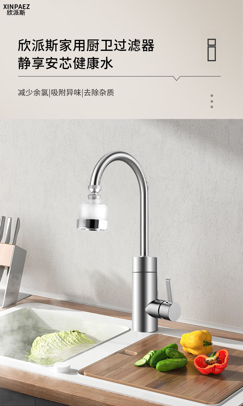 Кран для кухни с защитой от брызг, ротационный фильтр, универсальный удлинитель для водяного потока, общая установка