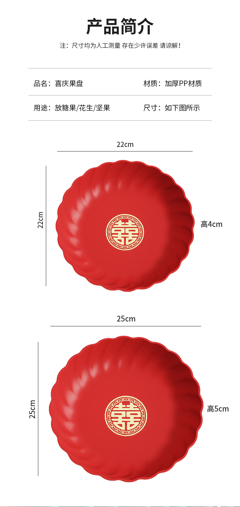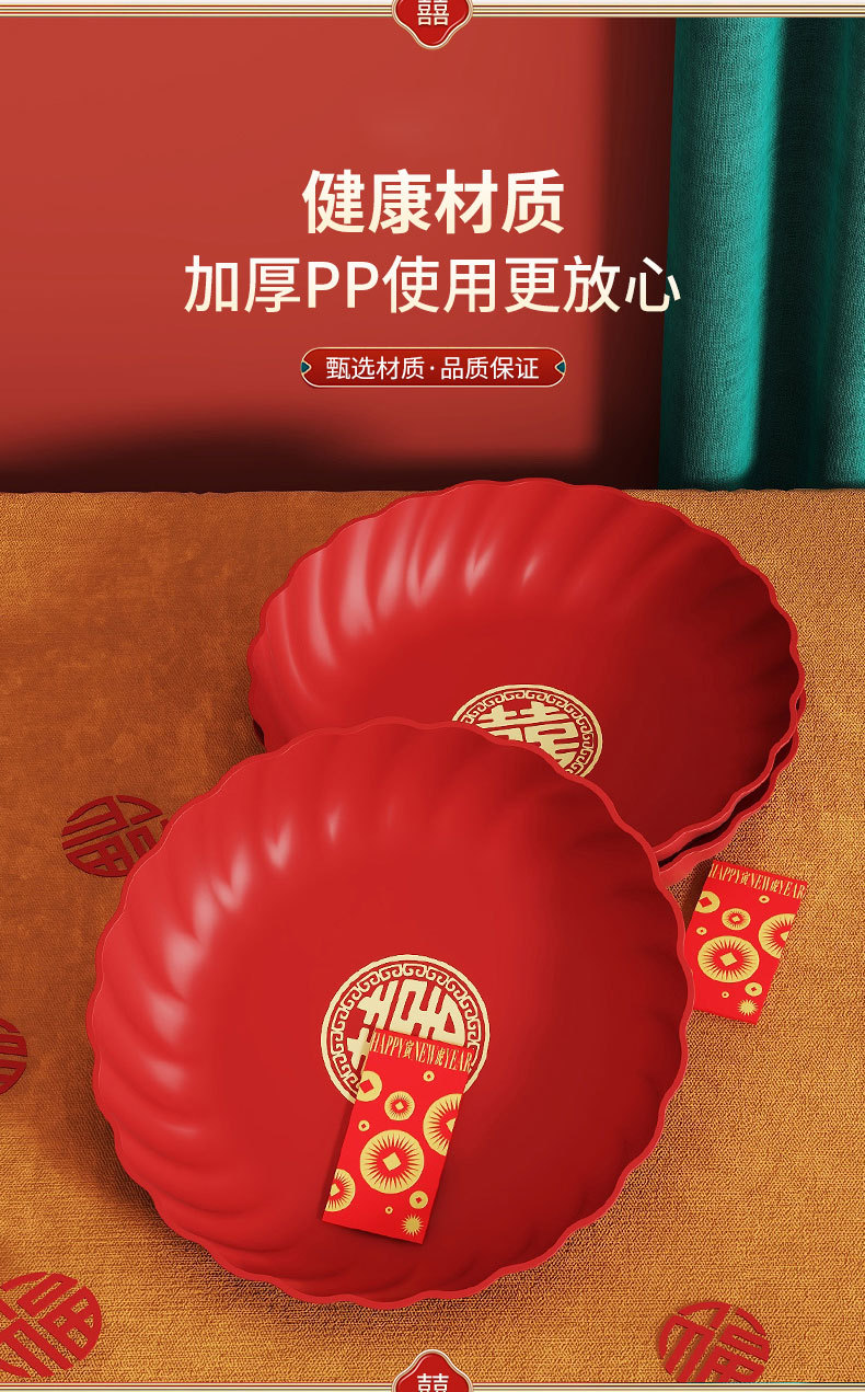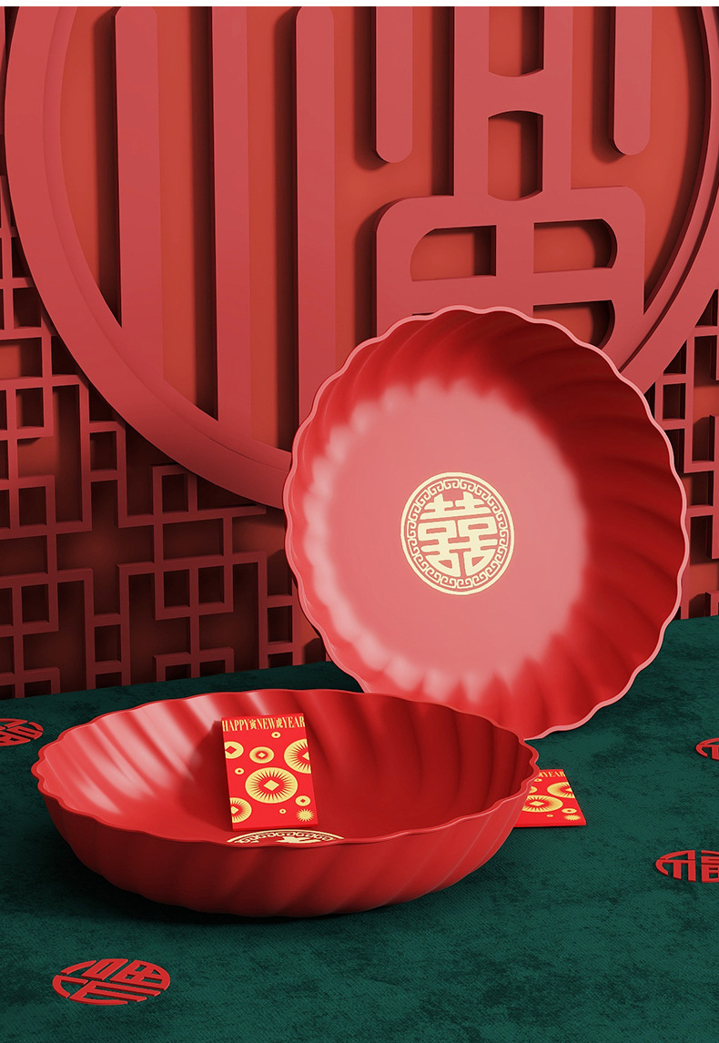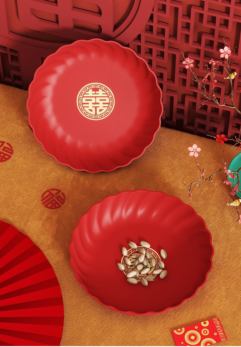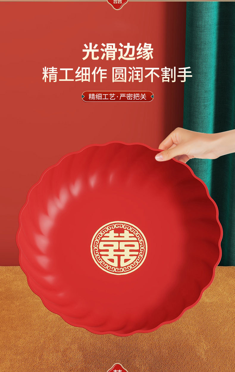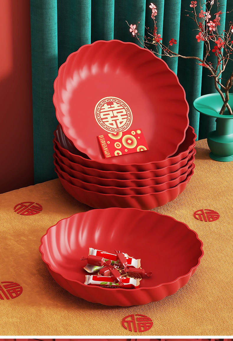 Пластиковая красная тарелка для свадебных конфет и фруктов