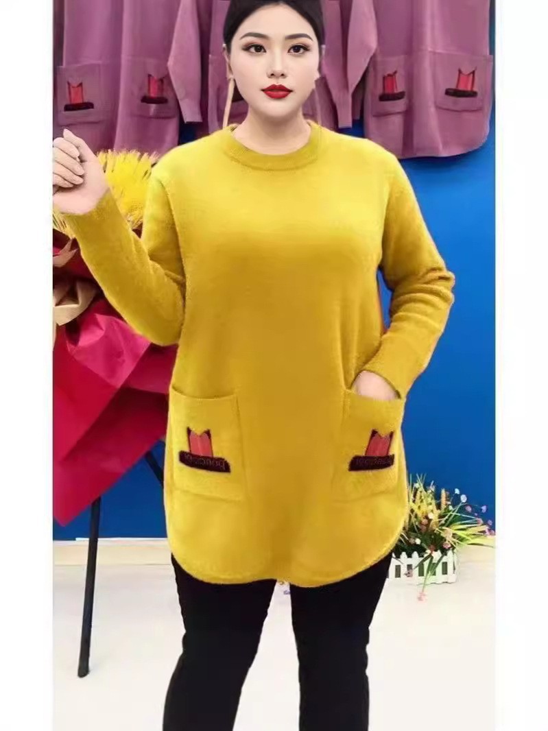 Модный зимний свитер с длинным рукавом для полных женщин средней длины свободный теплый утолщенный базовый топ