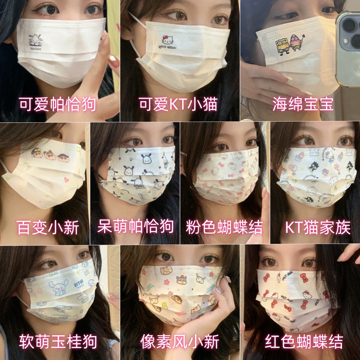 Маска одноразовая трехслойная с принтом собаки Югуй, дышащая, защитная для студентов, стильная для женщин