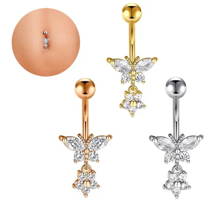 Популярное европейское и американское кольцо для пупка с бабочкой и бриллиантами, сексуальное простое украшение для пирсинга
