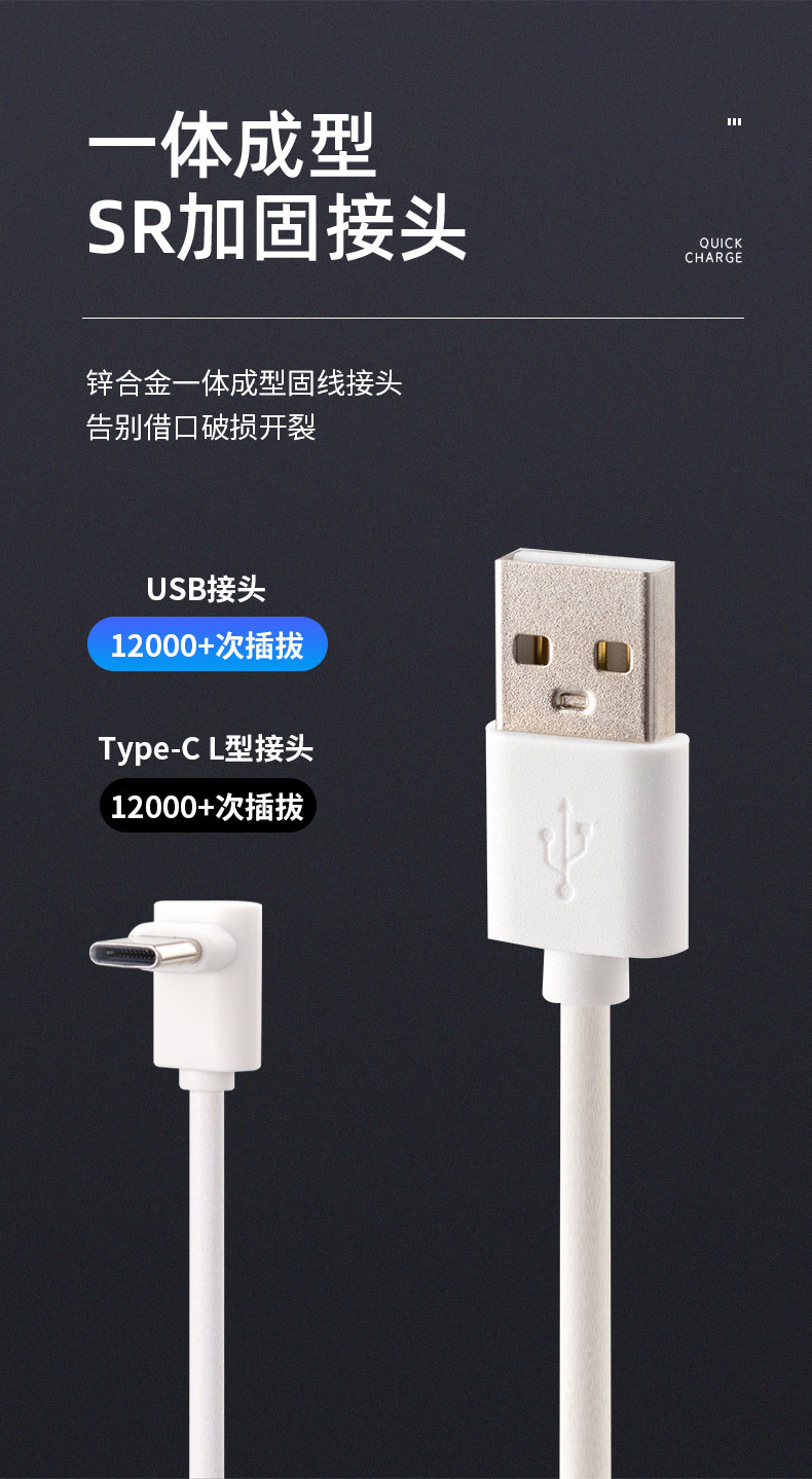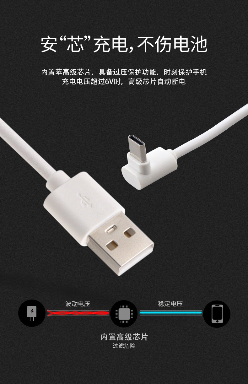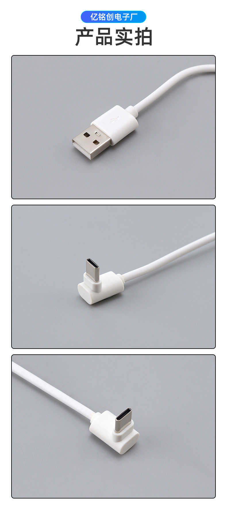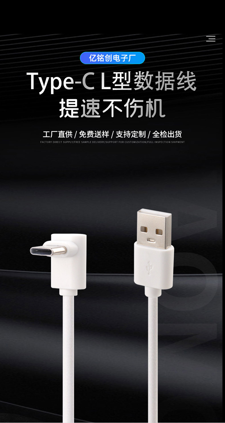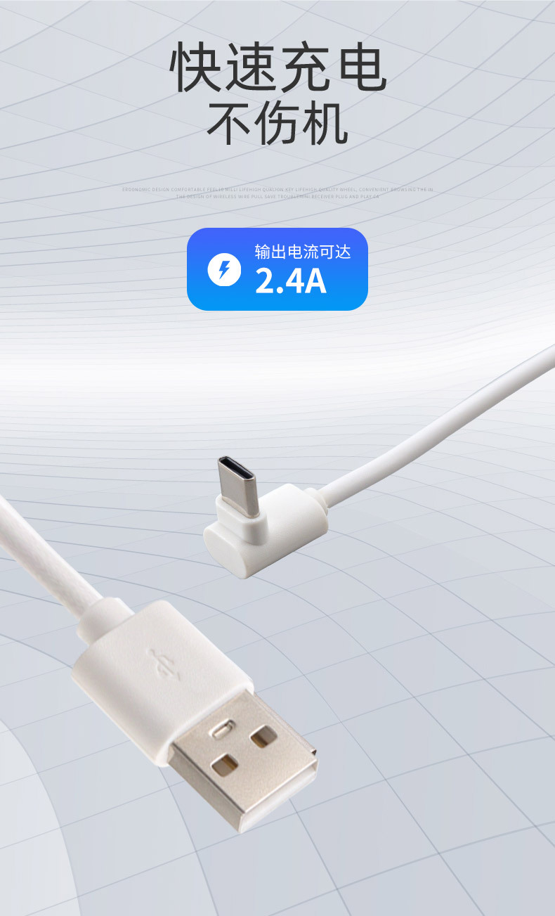 Одноконцевой Usb2.0 до Type-C кабель данных с углом 90 градусов для быстрой зарядки в автомобиле