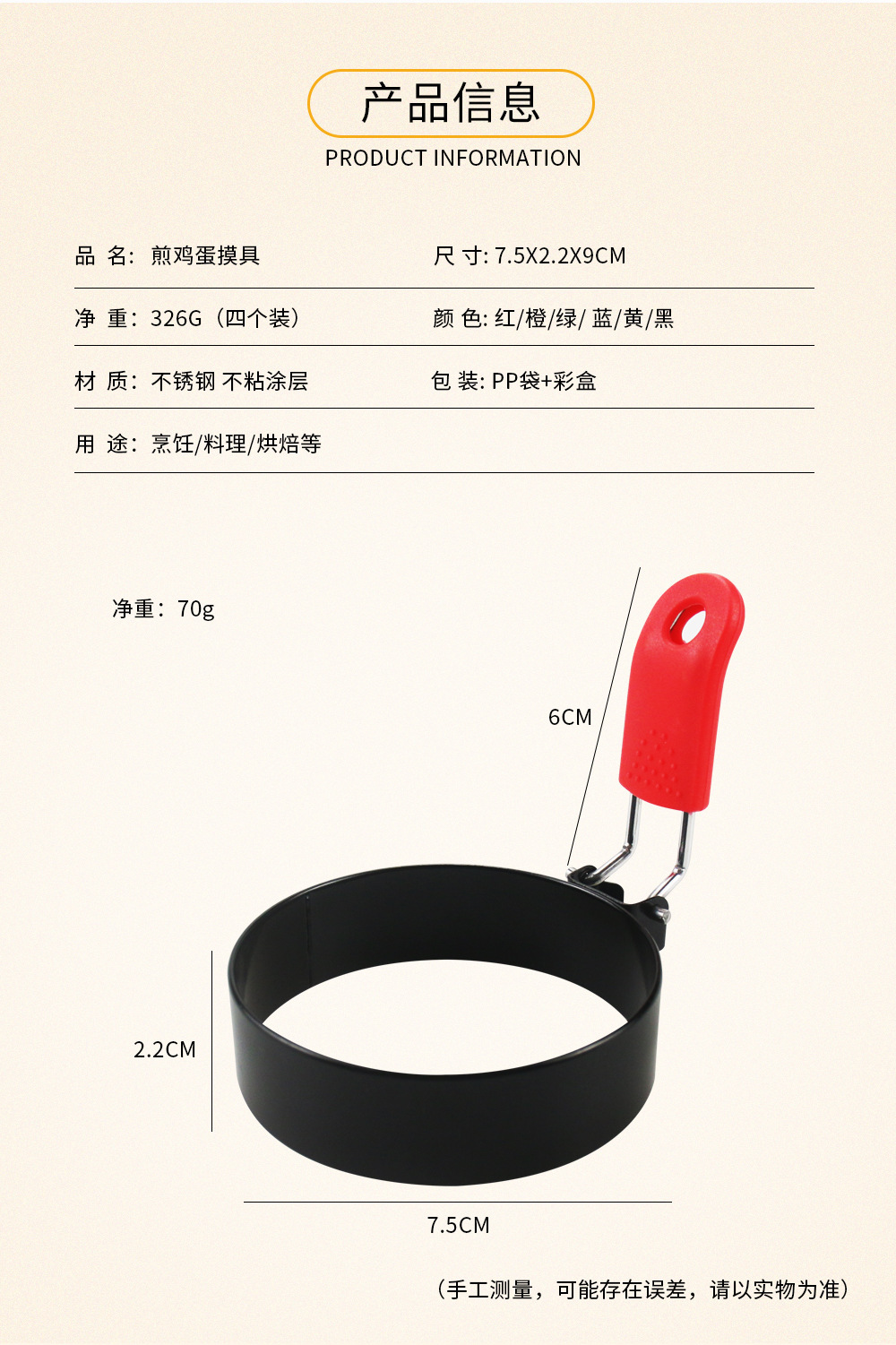 Анти-ожоговое яичное кольцо с антипригарным покрытием для круглого омлета, модель для омлета, форма для омлета, артефакт для омлета