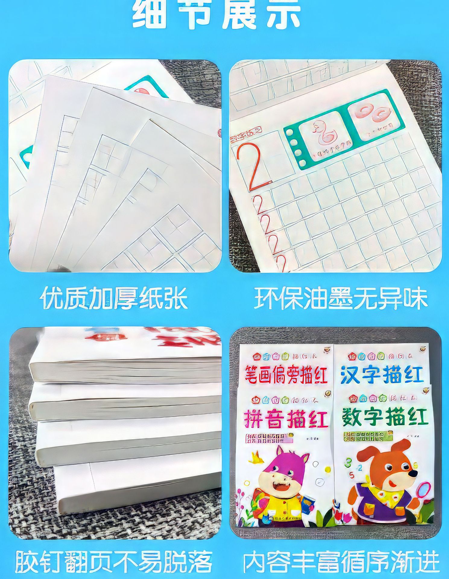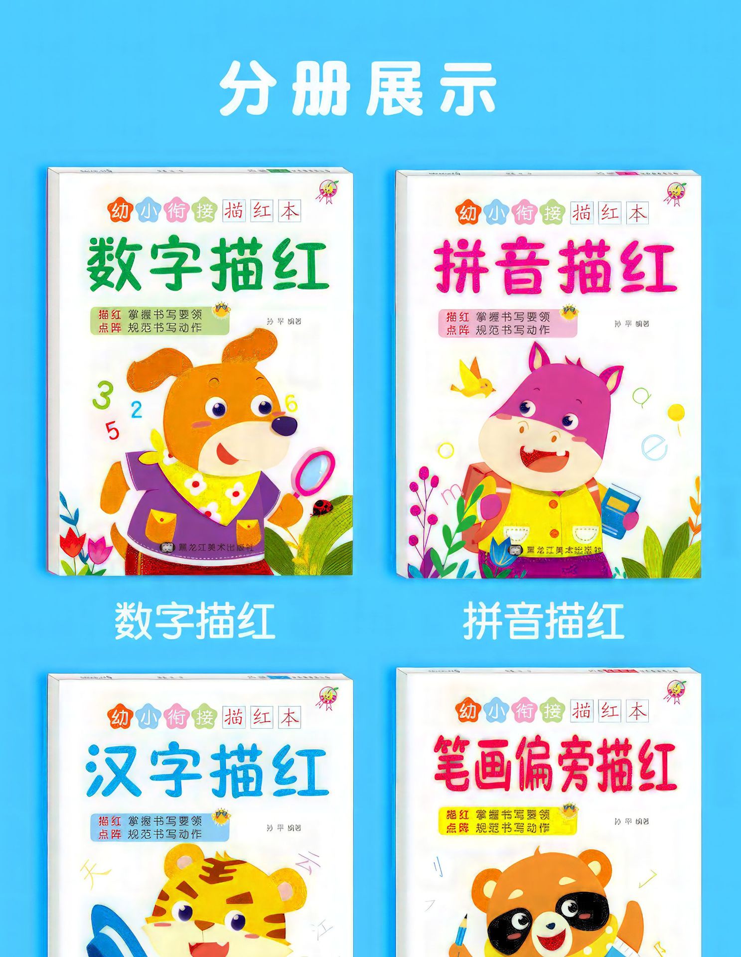Копировальная тетрадь для детей 3-6 лет, красная, с трассировкой и пиньинем, полный комплект из четырех книг