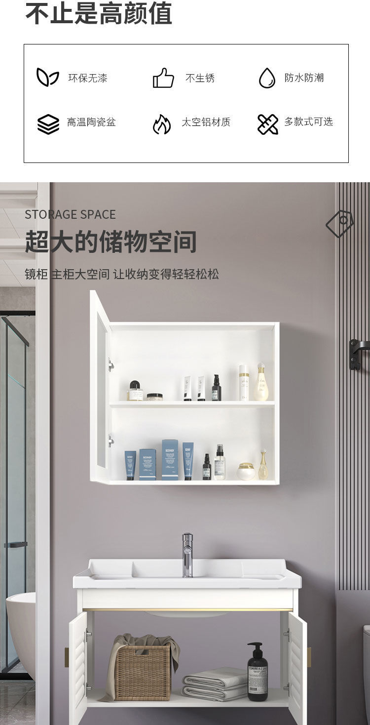 Современный минималистский туалетный шкаф, комбинация керамической раковины, алюминиевый туалетный шкаф