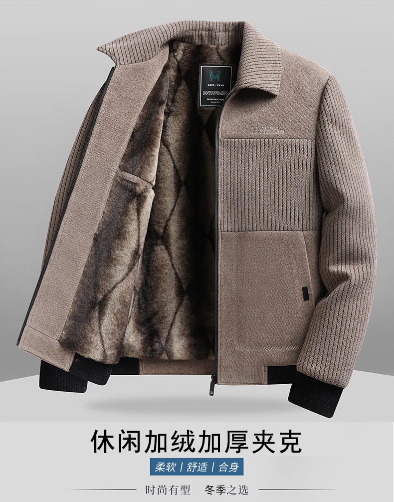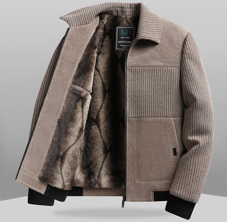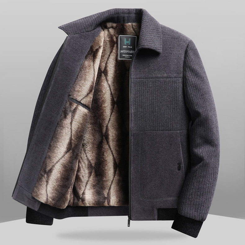 2024 Новая осень/зима утолщенная куртка для мужчин среднего возраста с флисовой подкладкой куртка с лацканами свободного кроя для папы