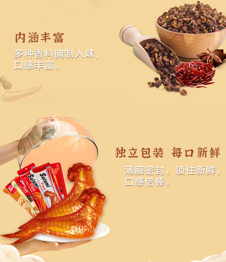 ![]() | 100g honey flavored chicken legs (chicken wings) | ¥13.5 / ≈ 163 ₽ | 1000 | 5765658719080 | |