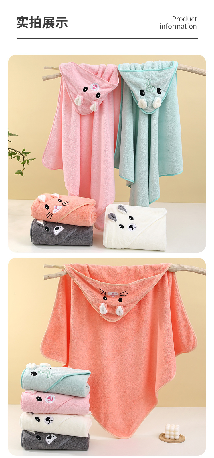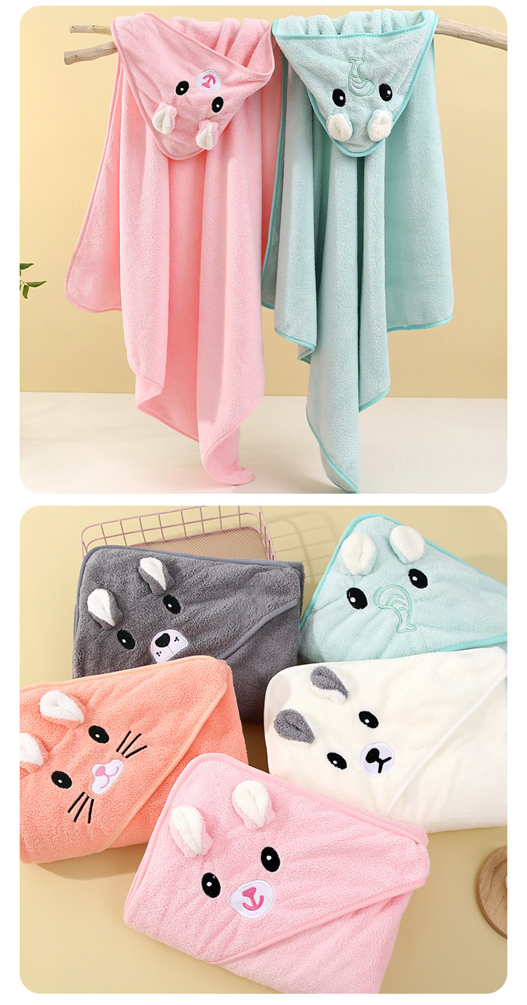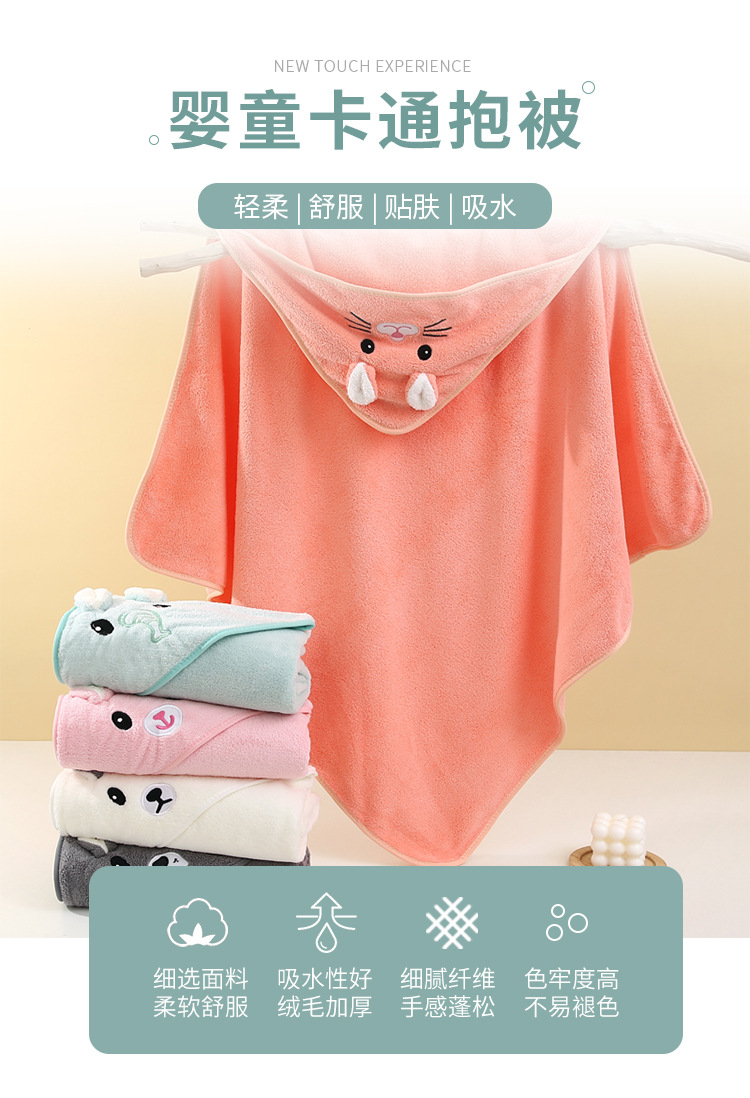 Детское полотенце для купания с капюшоном из кораллового флиса, осеннее и зимнее одеяло, мультяшный халат с вышивкой