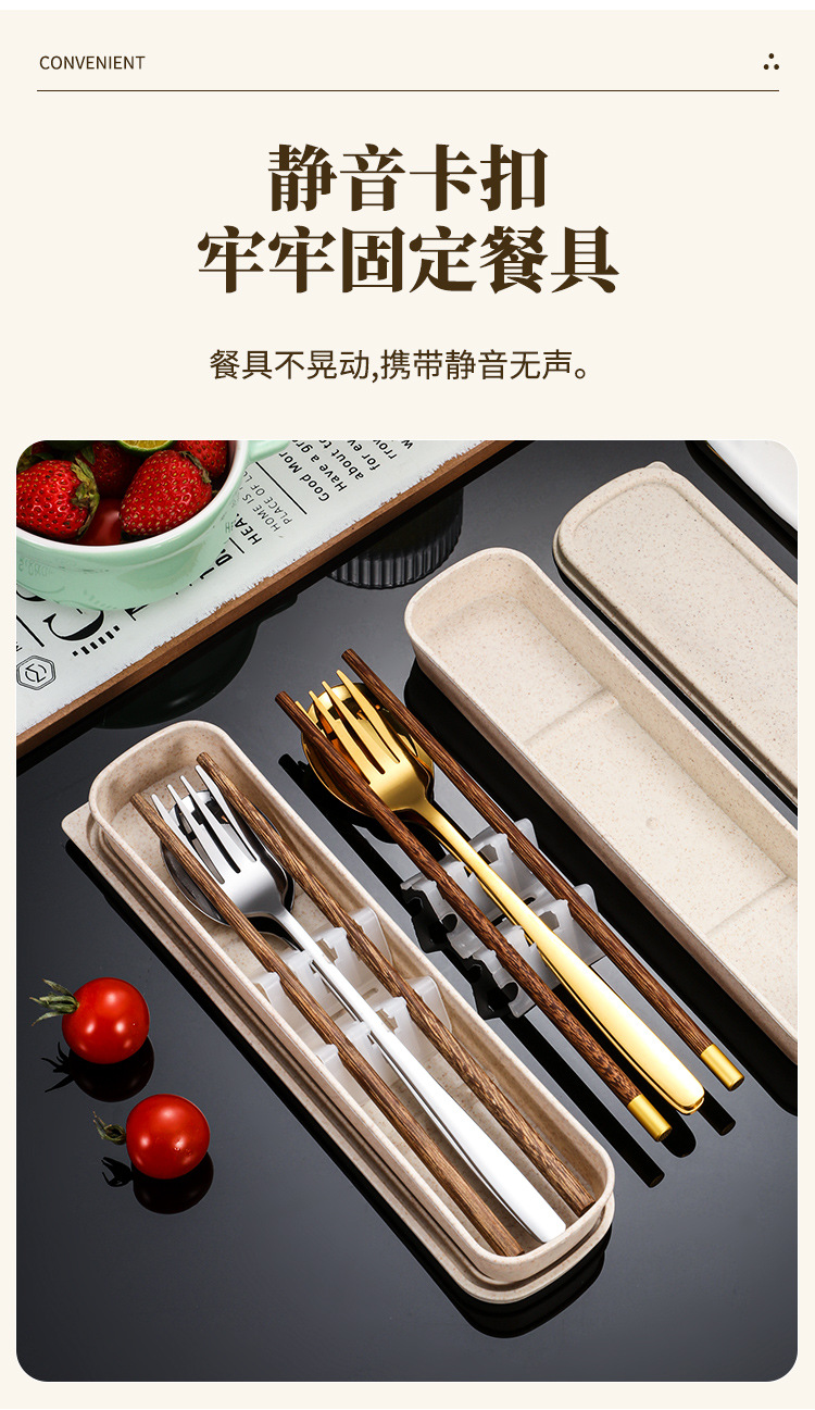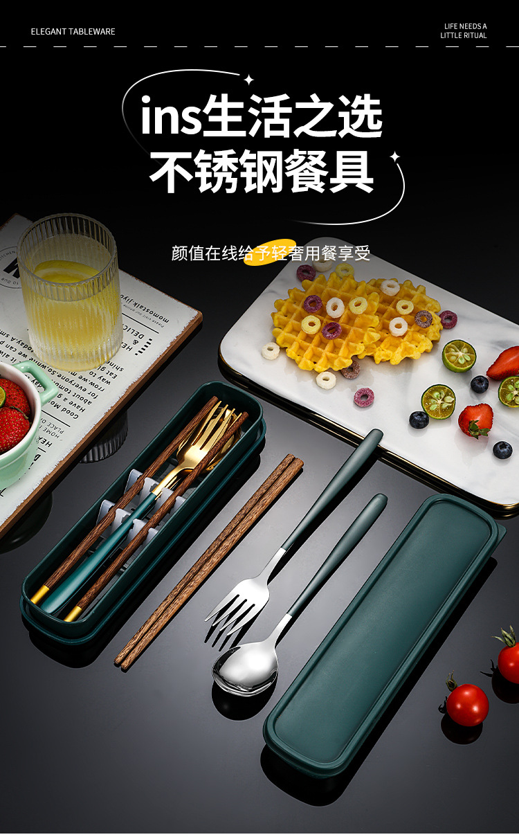 Корейский стиль, переносная столовая посуда, палочки для еды, ложка, вилка, креативный набор для студентов, дорожный набор, один контейнер, нержавеющая сталь, три предмета