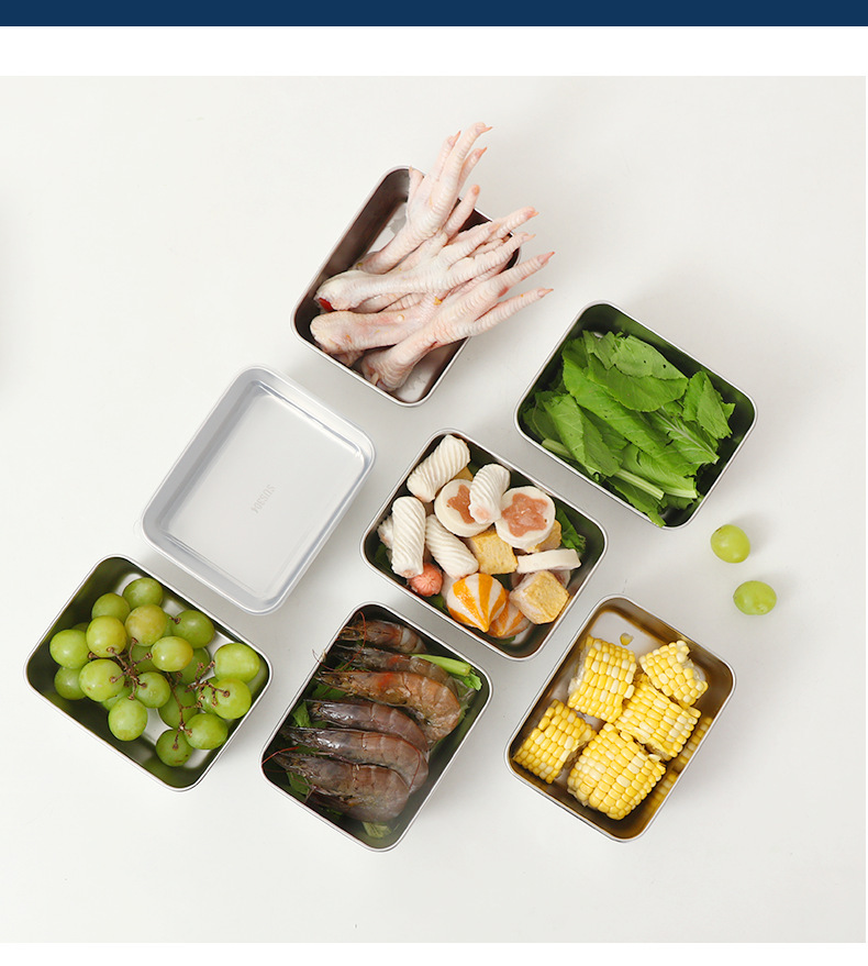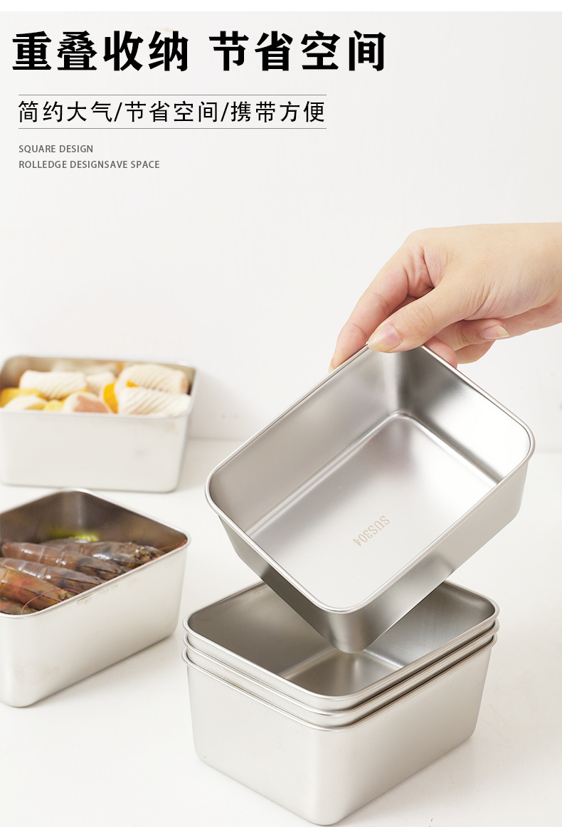 Контейнер для приготовления пищи из нержавеющей стали с крышкой, глубокий контейнер для хранения, холодильная ланч-бокс, герметичный контейнер