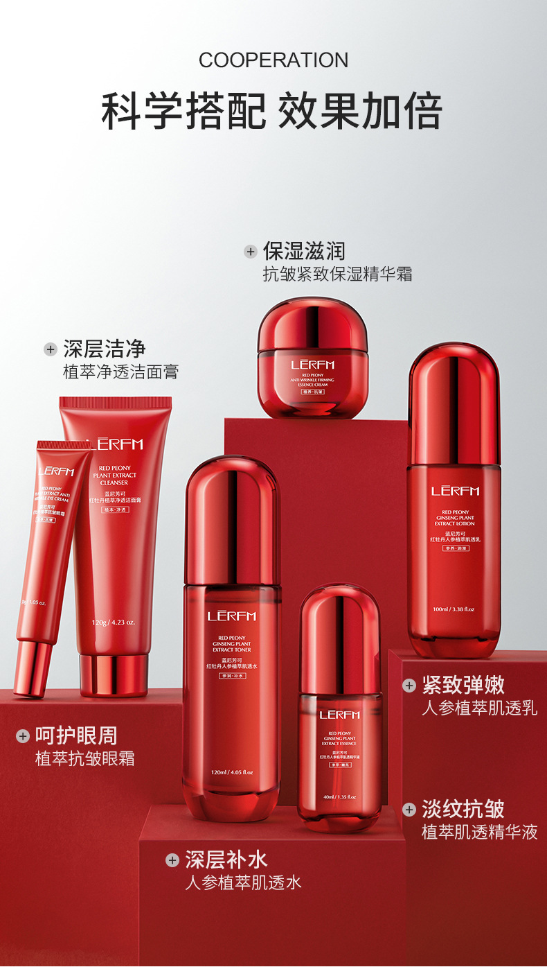 Набор роскошной антивозрастной косметики L-RFM Lanifang с красной пионой Шестичастный набор Увлажнение и питание от фабрики