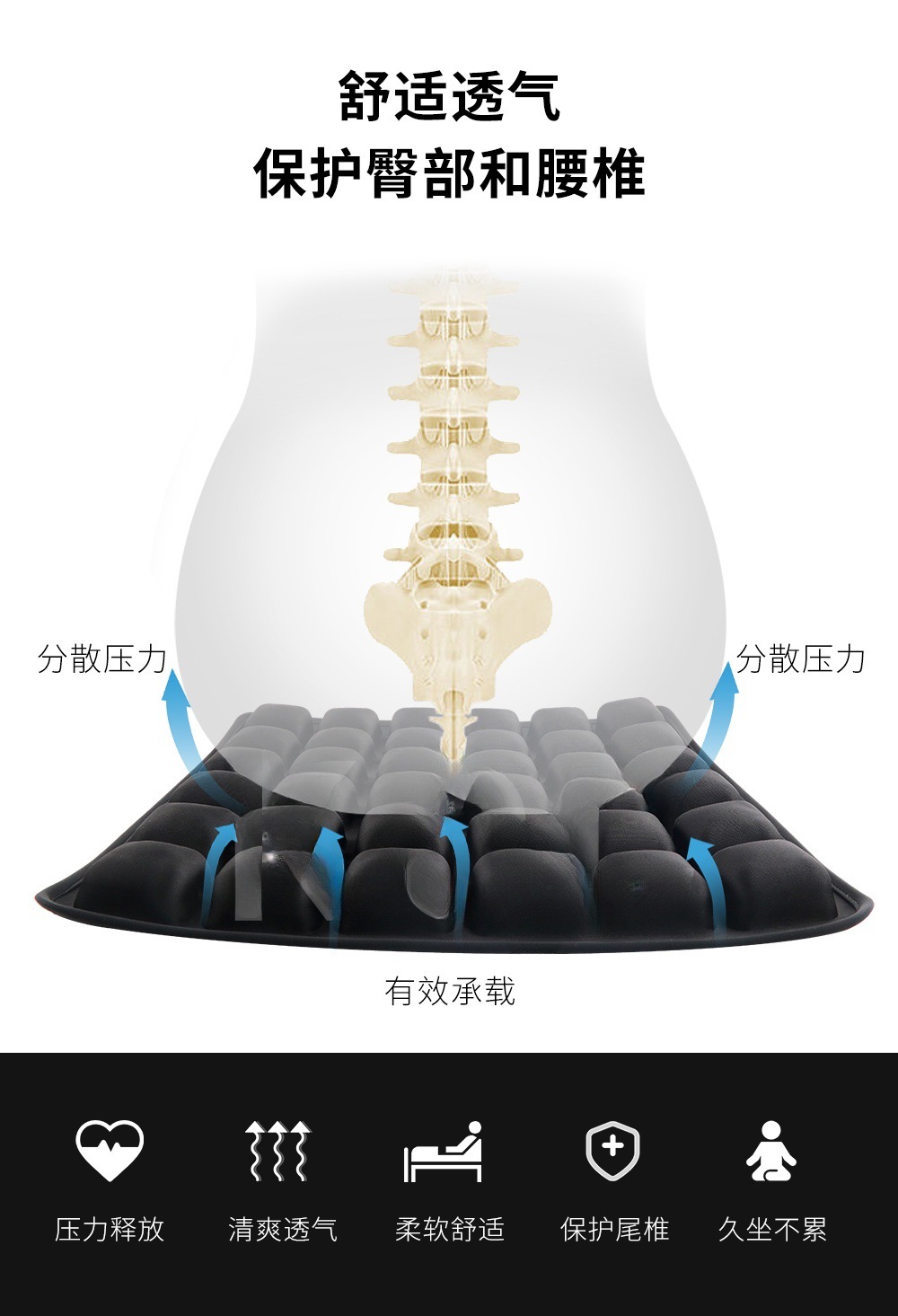 Антидекубитусная подушка 3D с воздушными подушками дышащая против боли в ягодицах для офиса и инвалидной коляски надувная TPU подушка для сидения