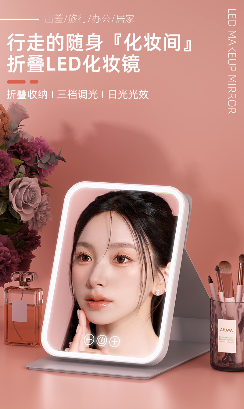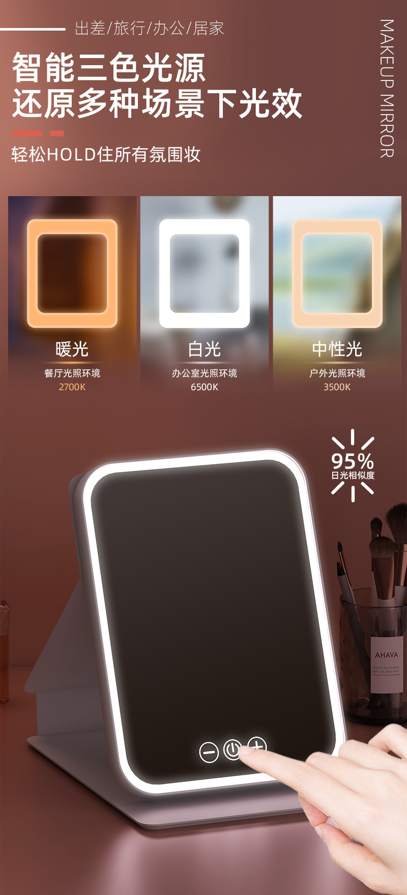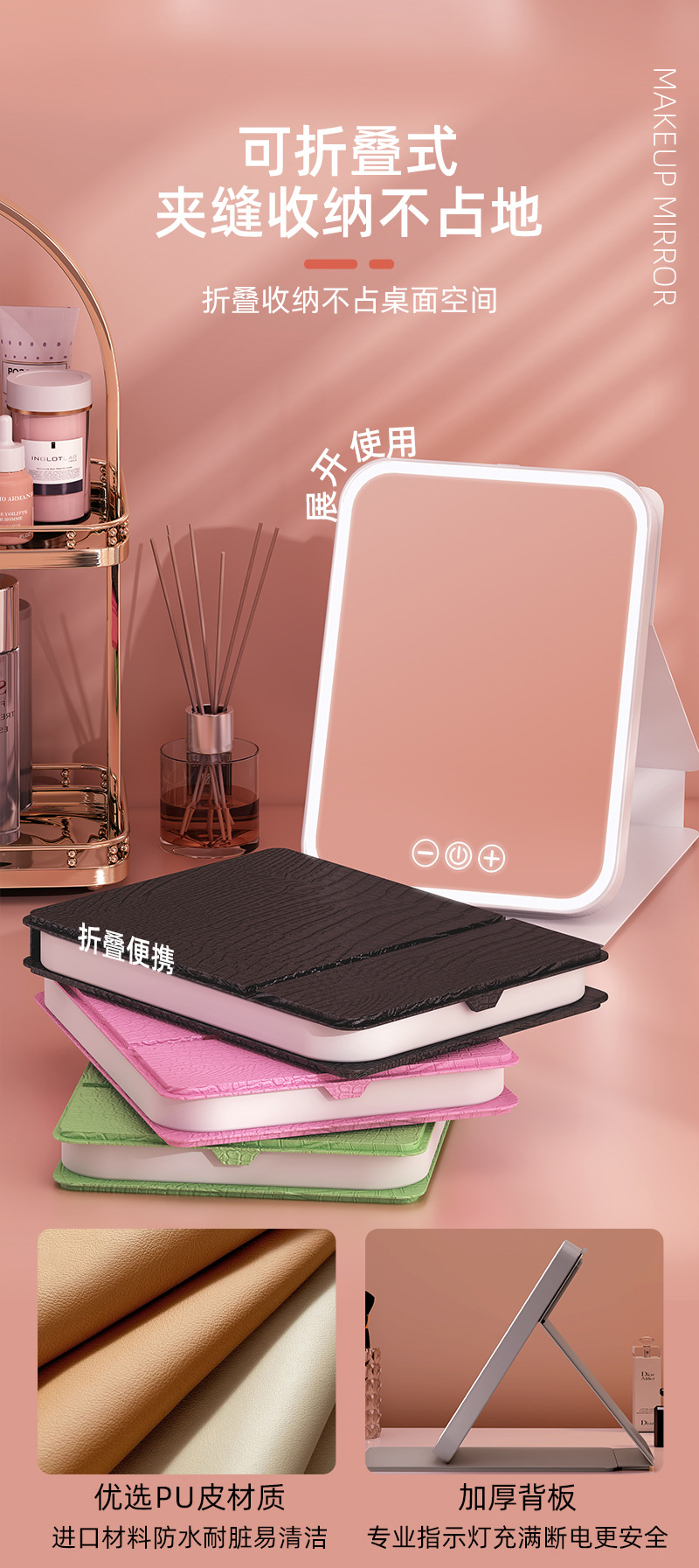 Зеркало для макияжа с подсветкой, складное, для туалетного столика, высокое разрешение, портативное, для стола в общежитии