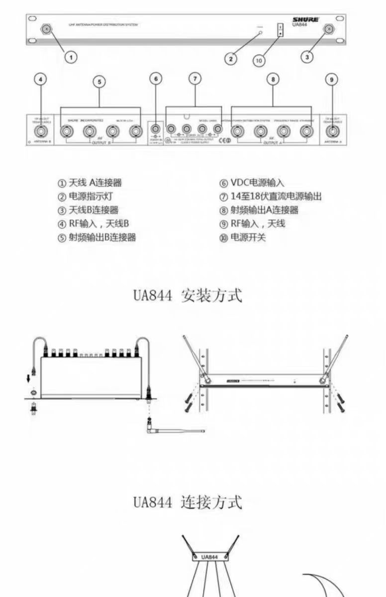 SHURE UA874WB UA8844 SWB/LC-C845 активный антенный сплиттер усилитель сигнала