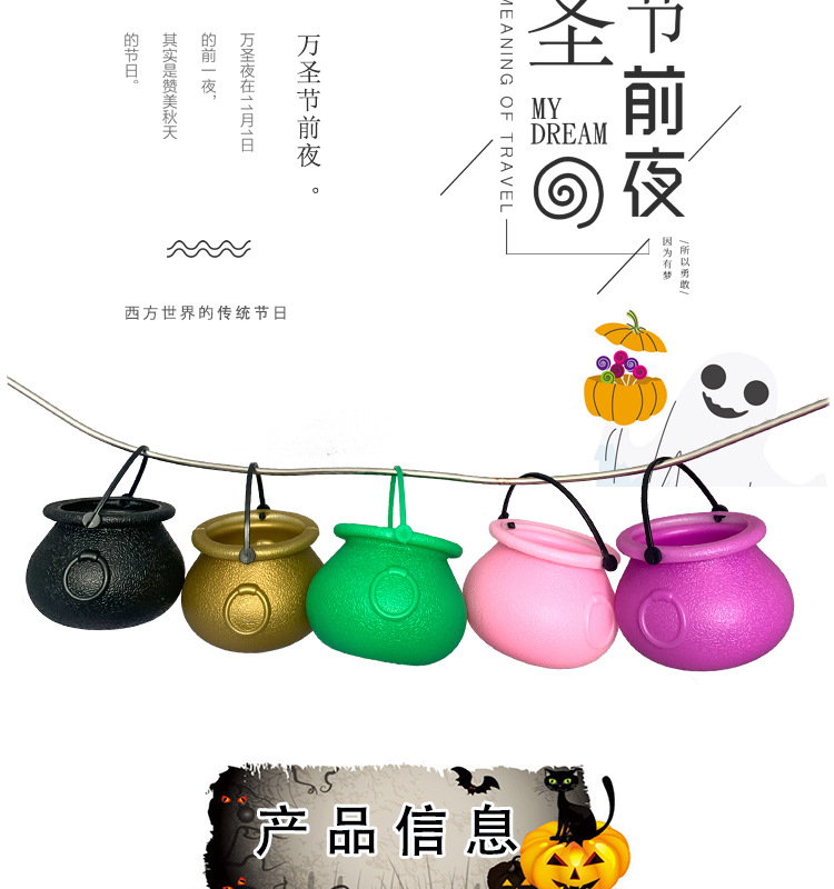 Кросс-граница Хэллоуин 7см черный портативный ведьмин фонарь тыква огненный ведро для конфет реквизиты для выступлений в наличии