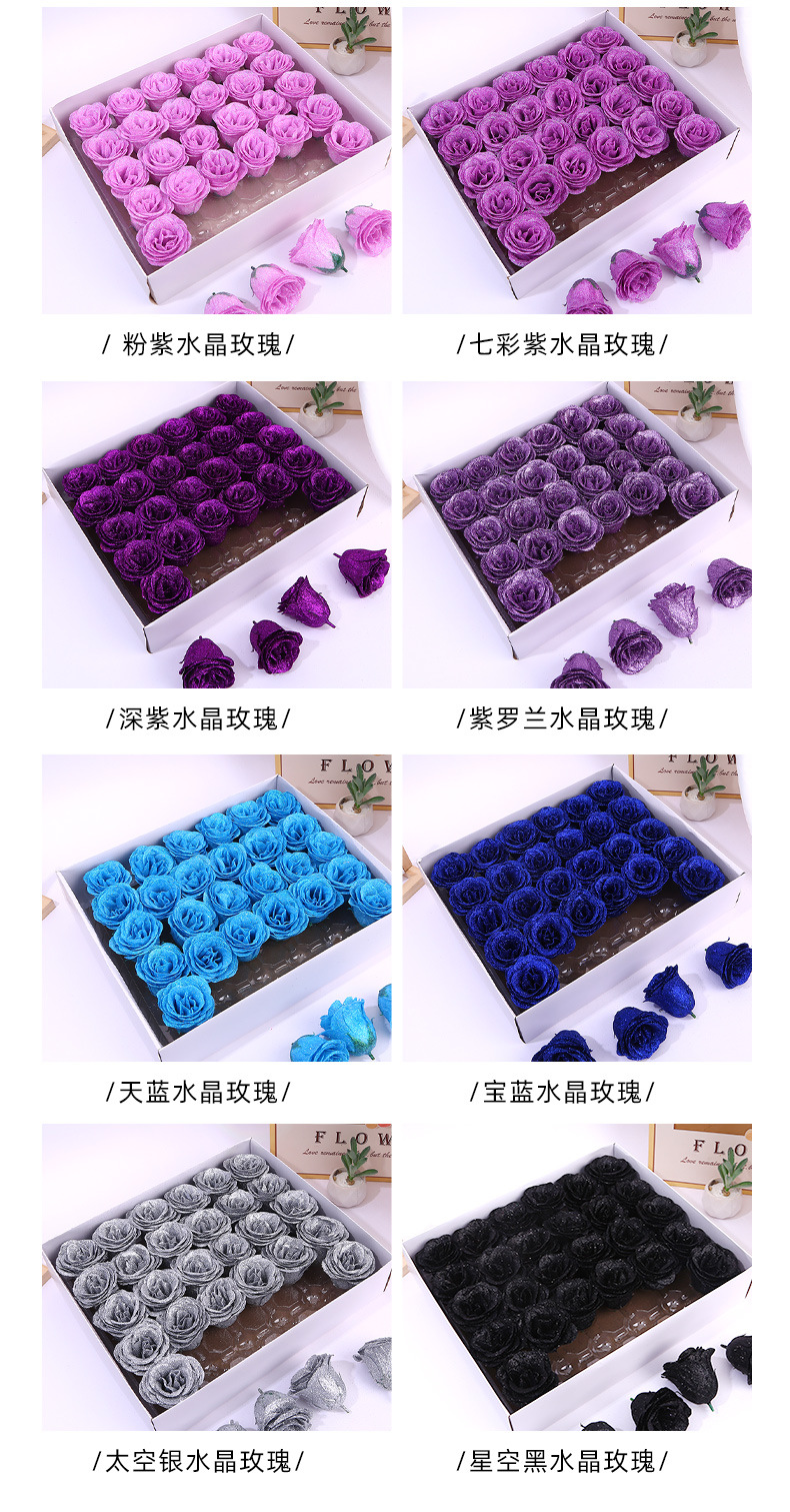 Искусственная цветочная голова, DIY, кристальная роза, голубая роза, роза с crushed ice, вечный цветок в подарочной коробке