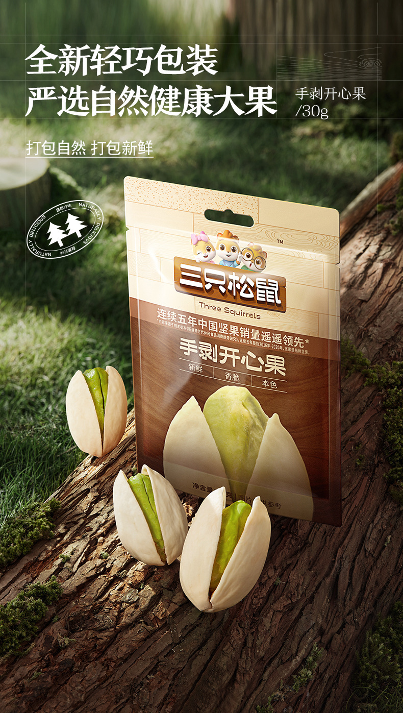 Фисташки Three Squirrels 30г, здоровые закуски, орехи, сухофрукты, жареные орехи