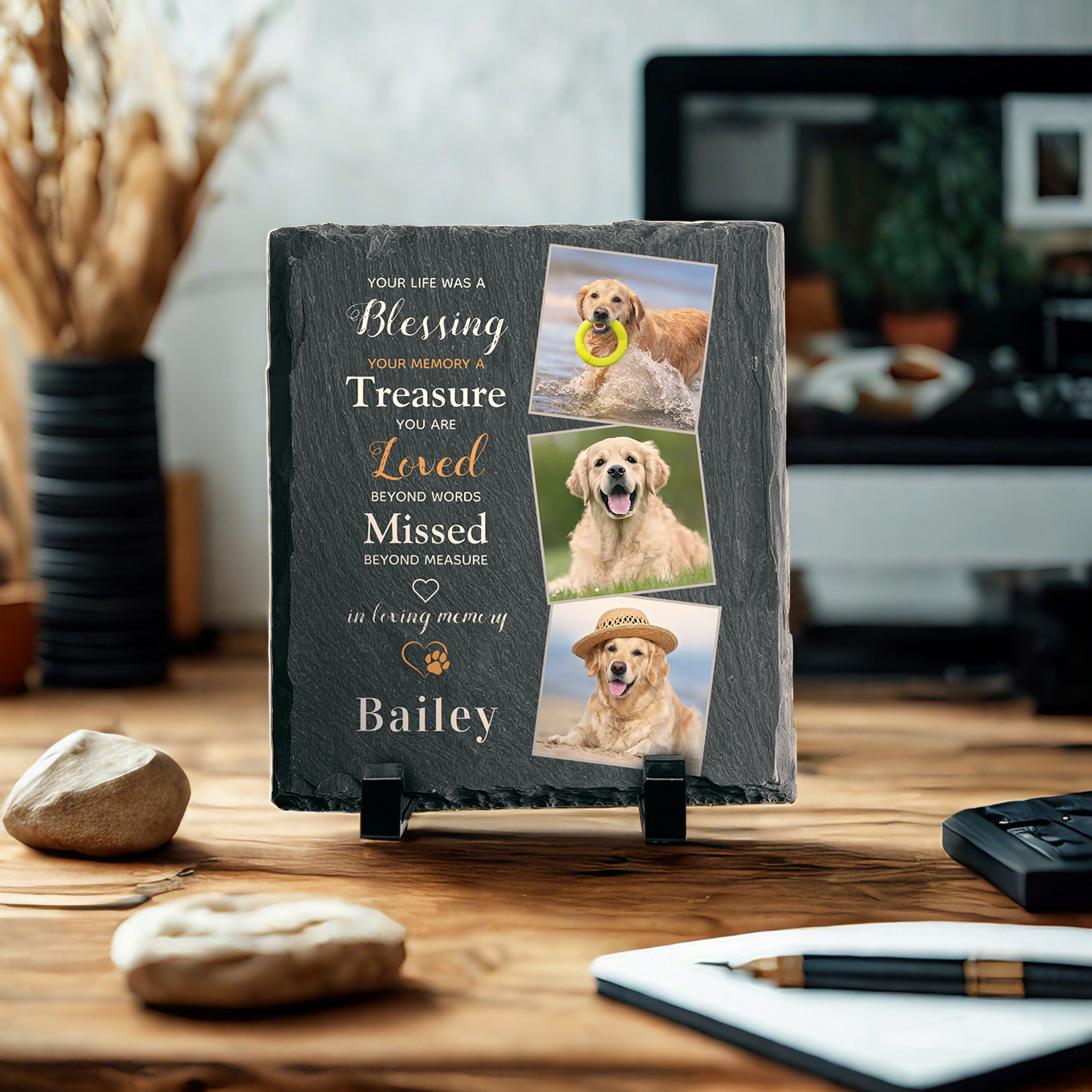 Кросс-бордер памятный камень для домашних животных Статуэтка Орнаменты Сланец Квадратный Сердцеобразный надгробие для щенка и кошки