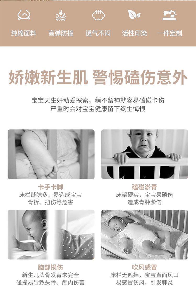 Ограждение для новорожденного, 100% хлопок, дышащее, антиколлизийная подушка, цельная сумка для детской кроватки