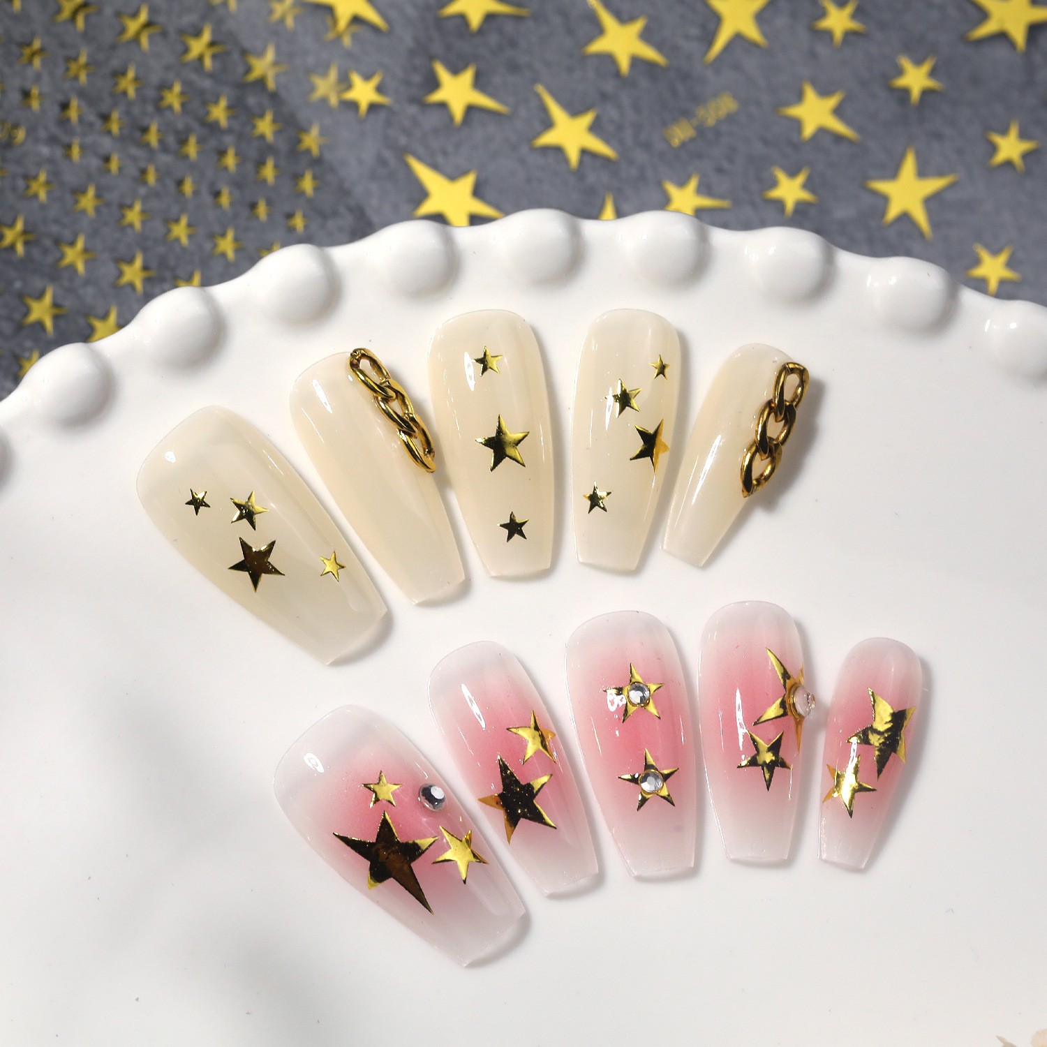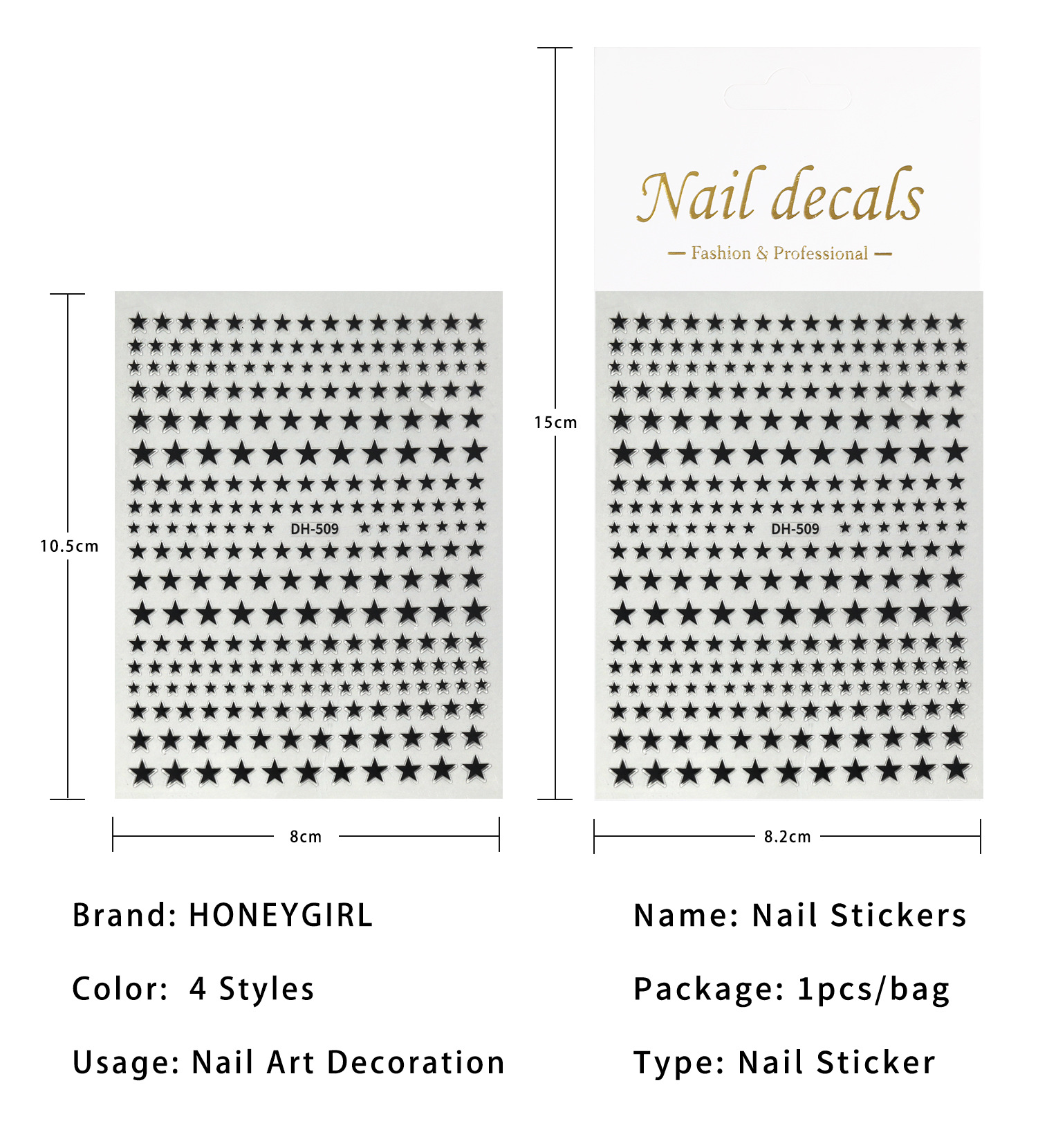 Наклейки на ногти с регулярным пентаграммным дизайном, универсальный плоский дизайн, различные размеры, наклейки для ногтей DIY Dh509