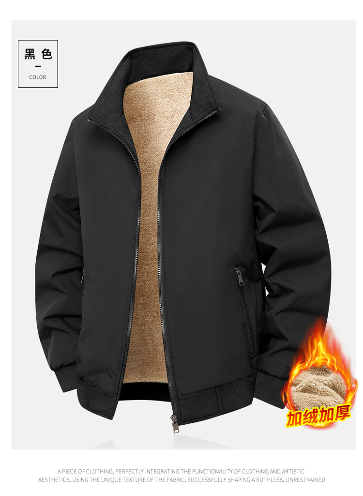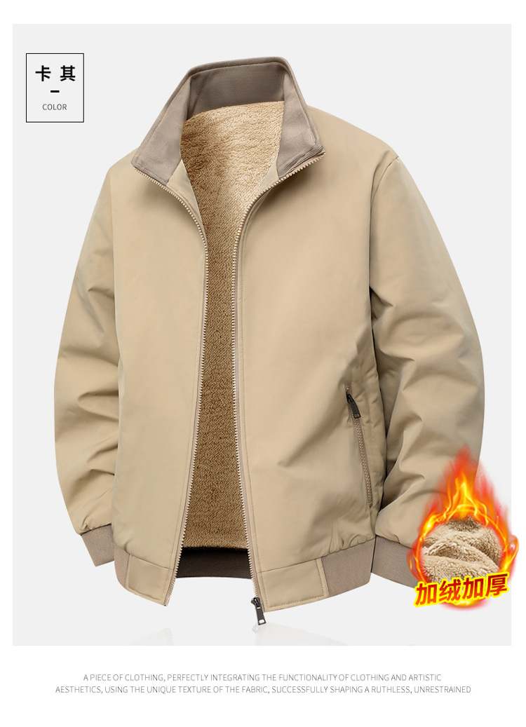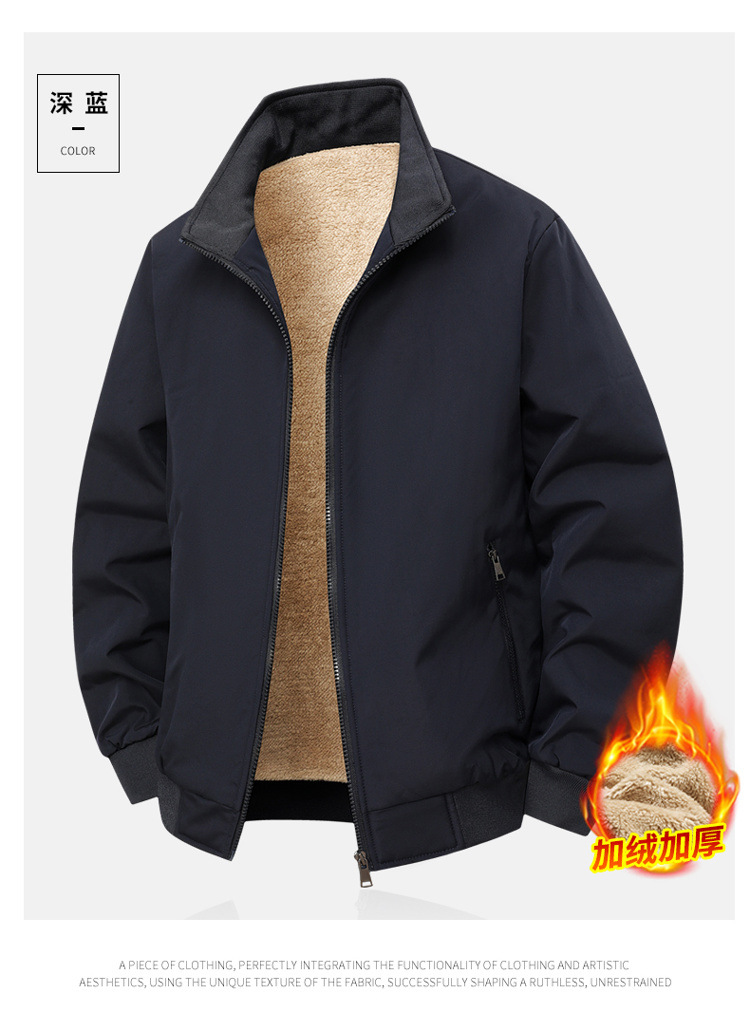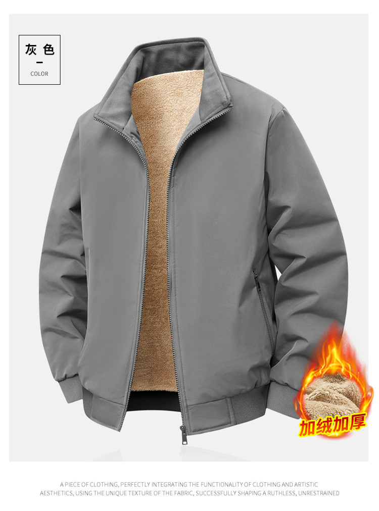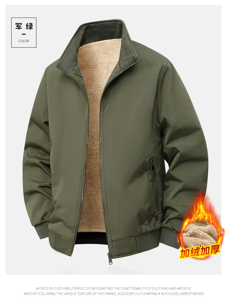 Зимняя мужская куртка с флисовой подкладкой Утолщенная теплая свободная куртка с воротником для мужчин Модная повседневная простая куртка