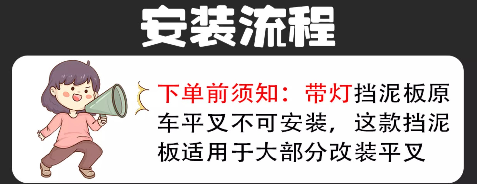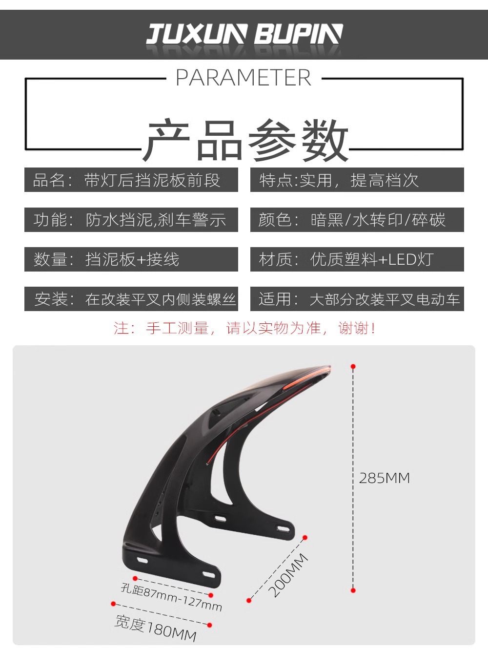 ![]() | T11 fender + red light [for modified flat fork only, need to break the wire] water transfer printing | ¥48.0 / ≈ 578 ₽ | 502 | 5772268199262 | |