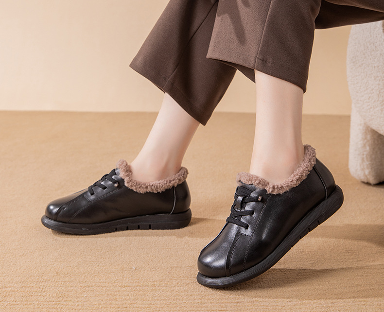 Зимние теплые туфли для мам, плоские нескользящие туфли для женщин среднего и пожилого возраста