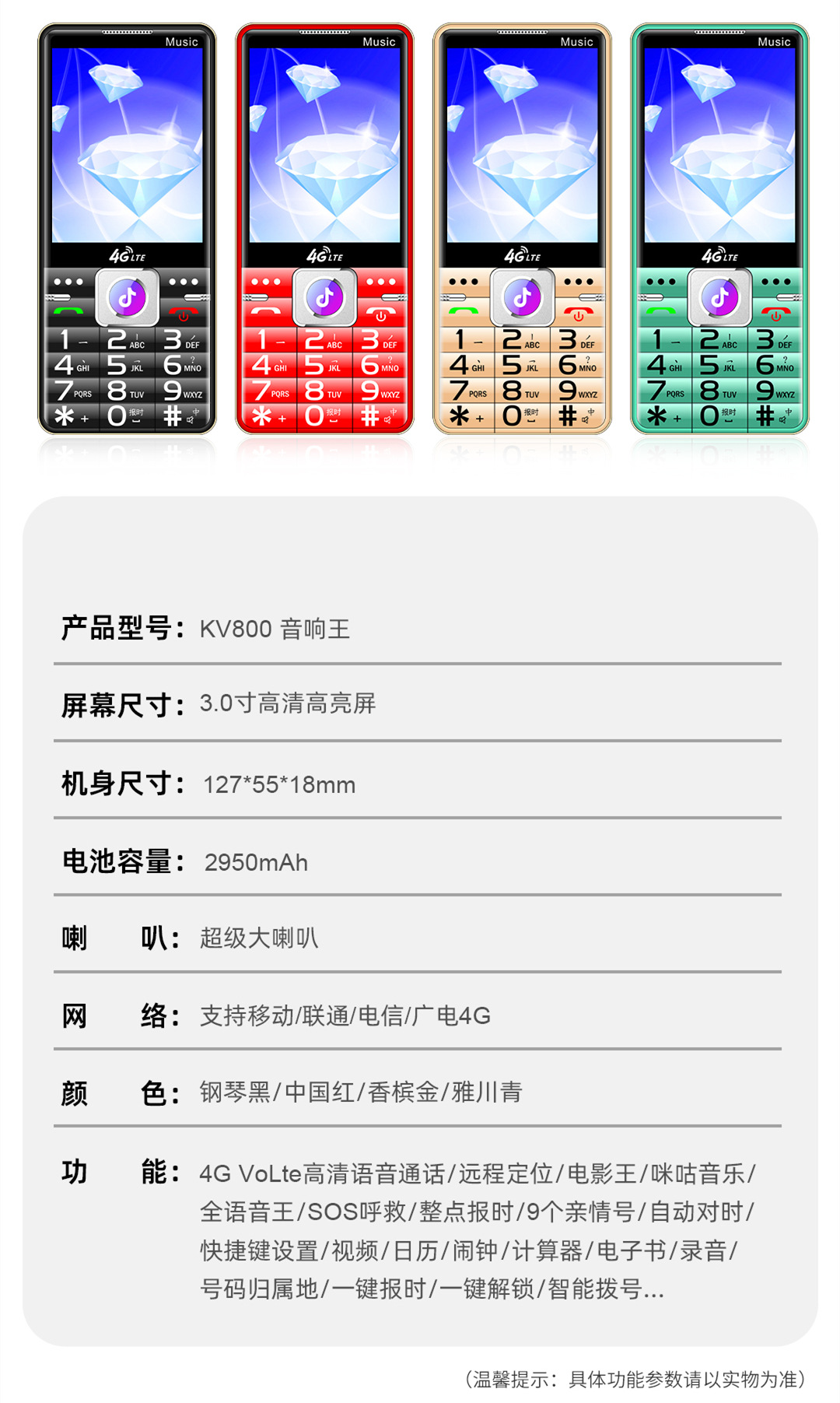 ![]() | Gold [full netcom] 3.0inch nail screens + positioning + giant large speakers | ¥95.0 / ≈ 1 144 ₽ | 2975 | 5772663171563 | |