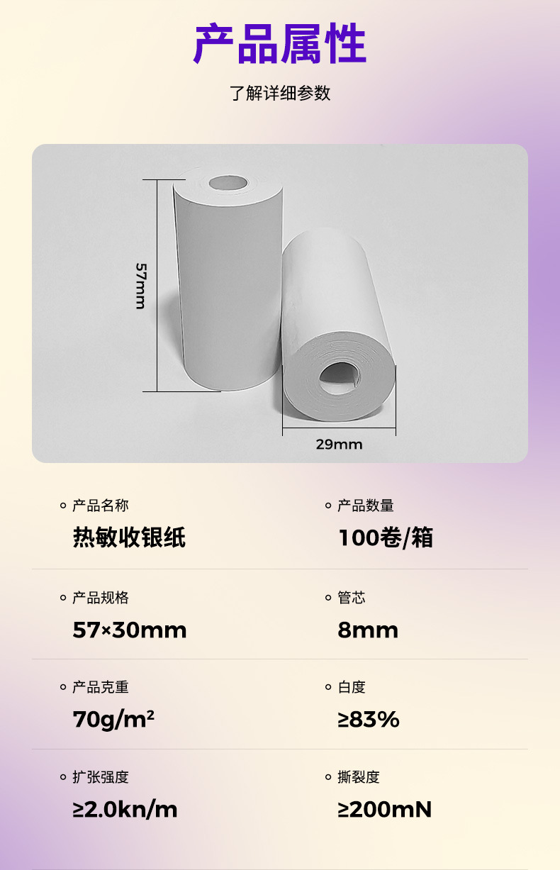 Термальная бумага для кассовых аппаратов без штамповки 57x30, бумага для печати на машине Meow, целая упаковка