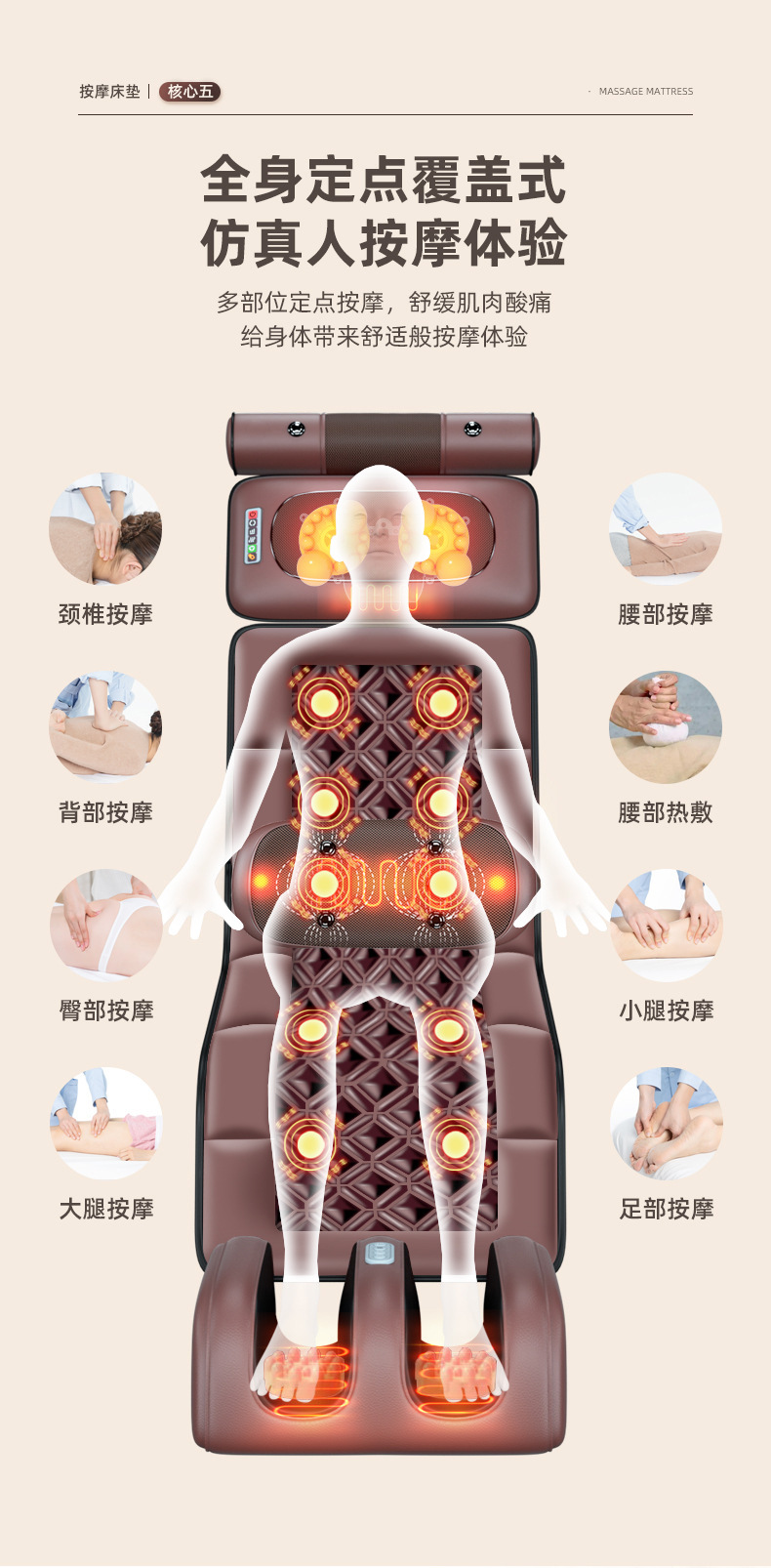 Массажный матрас для всего тела, многофункциональный массажер для шейного отдела, подушка для массажа поясницы, электрический массажный стул