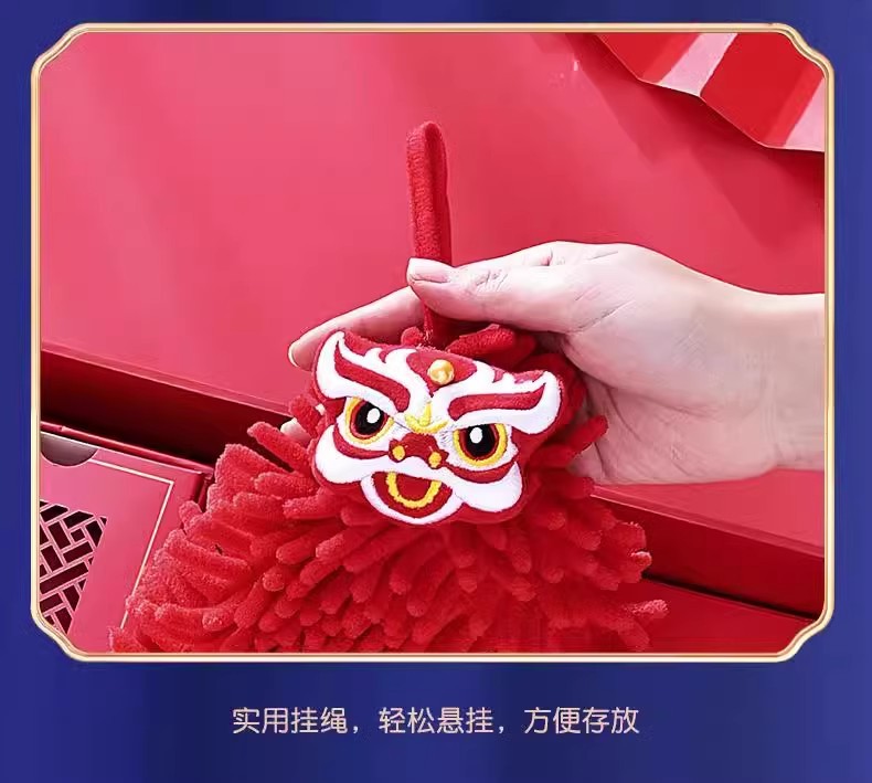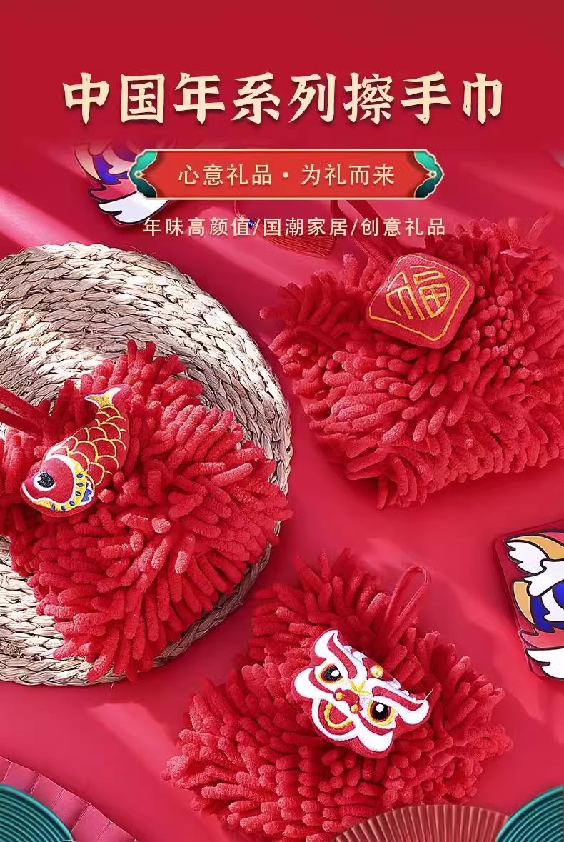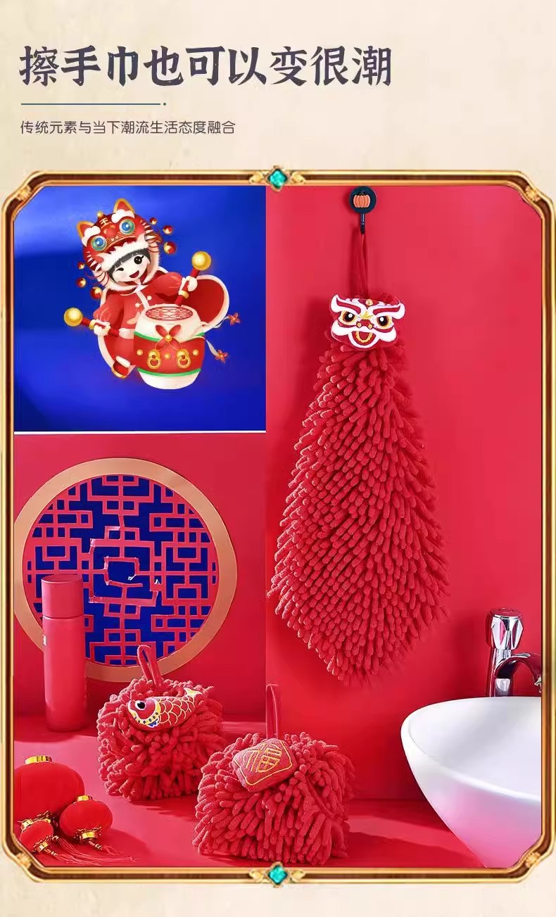 Висячее полотенце для рук, милое свадебное красное праздничное полотенце из шенилла, кухонное и ванное, с танцем льва