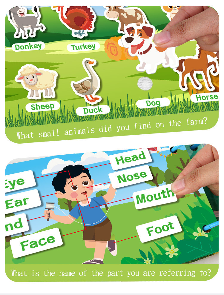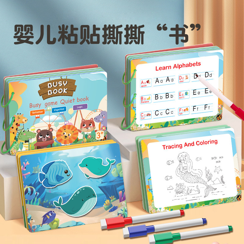 Кросс-бордерная английская Книга с отрывными страницами Тихая книга Книга с отрывными страницами Повторяющееся обучение Образовательная книжка со стикерами для детей