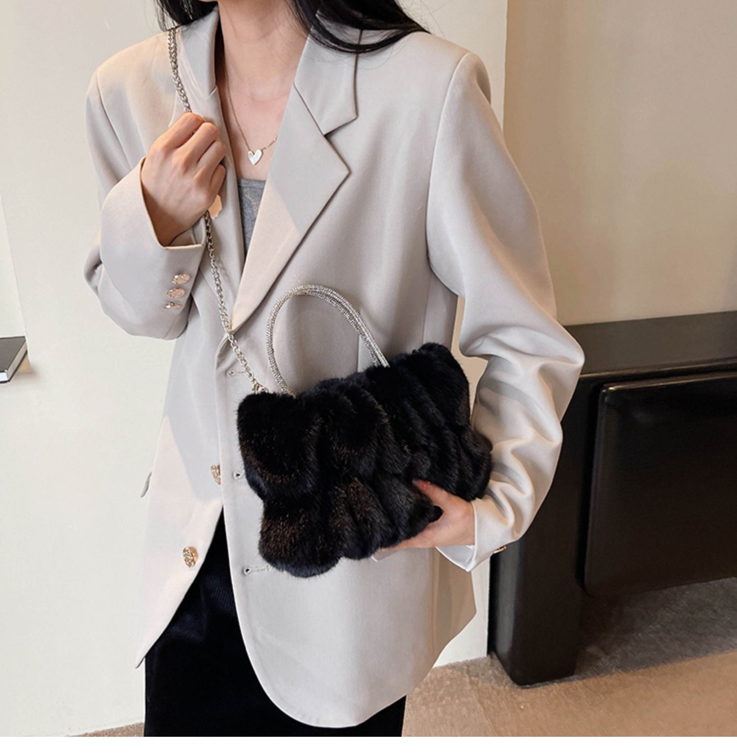 Пухлый маленький сумка для женщин 2025 новый универсальный меховой облачный сумка весна и лето меховая цепочка через плечо сумка