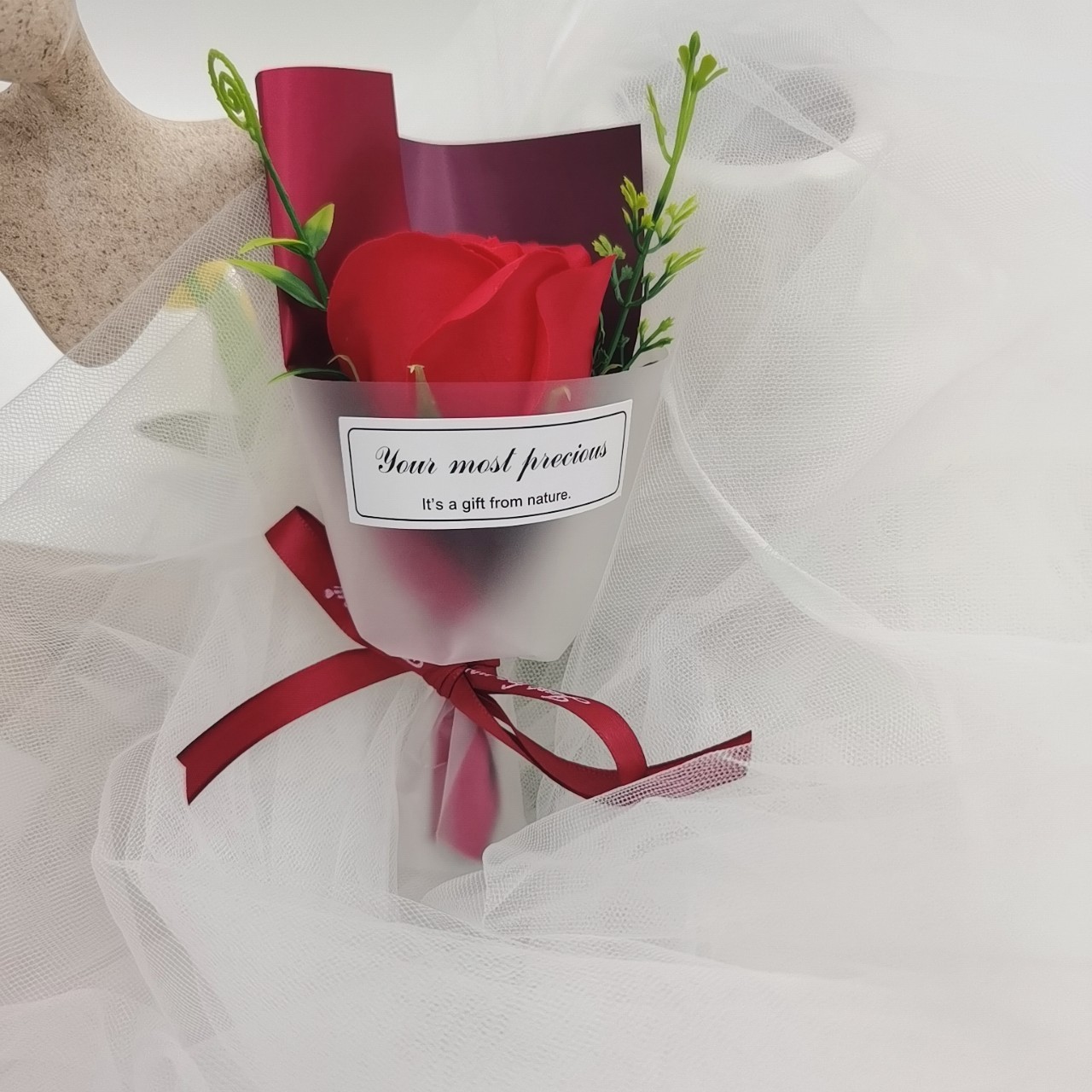 Букет мыльных роз на праздник богини, подарок в одиночной коробке, имитация мыльных цветов, красные аксессуары